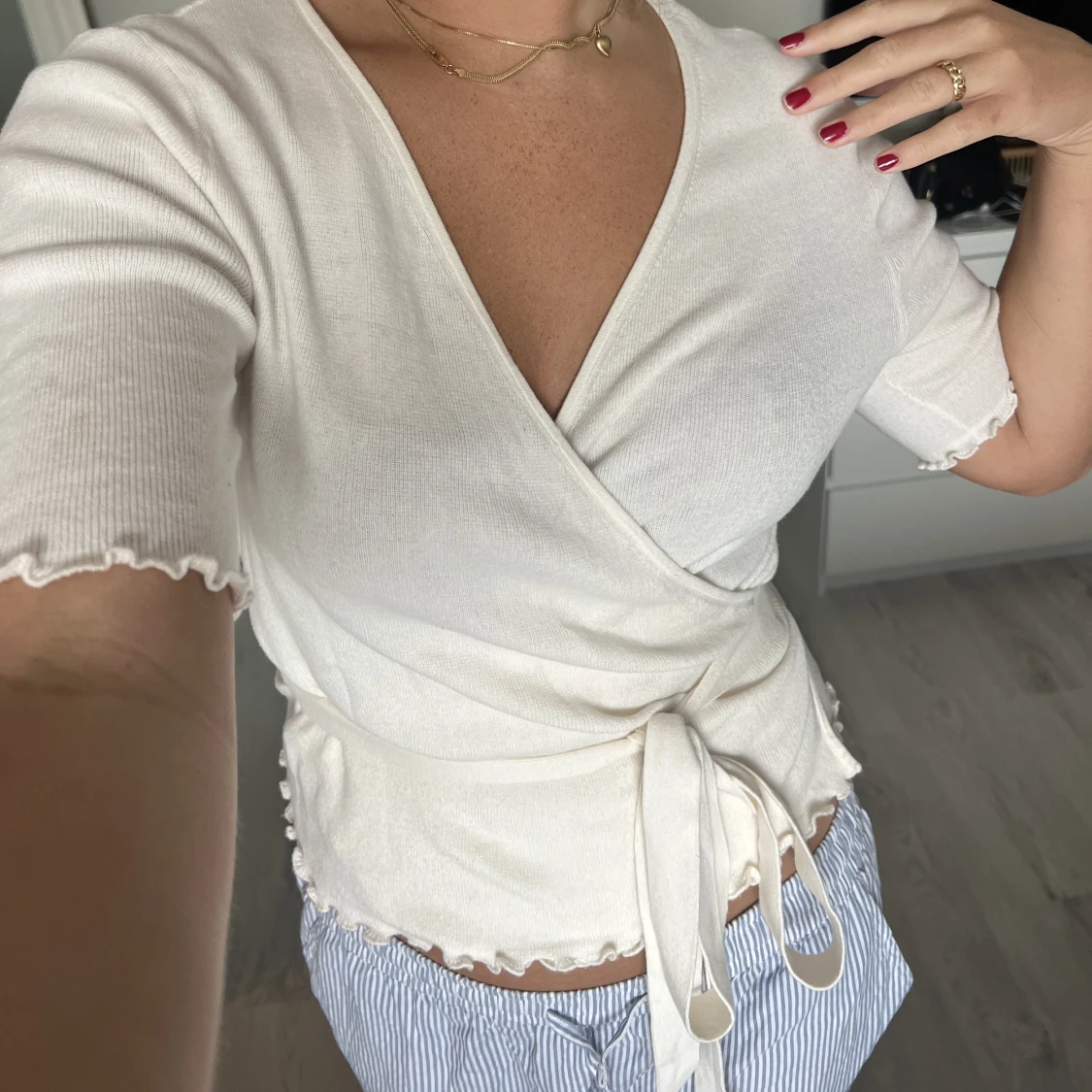 Super gullig creme vit omlott blus/tröja i stickat material!! Super bra skick!