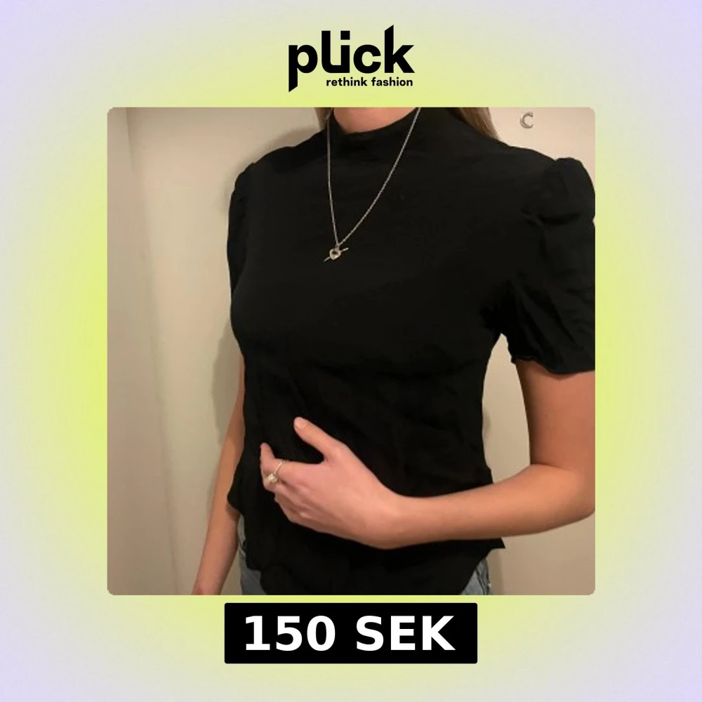 Snygg svart topp med korta ärmar och hög hals. Perfekt för en stilren look. Passar bra till jeans eller kjol.