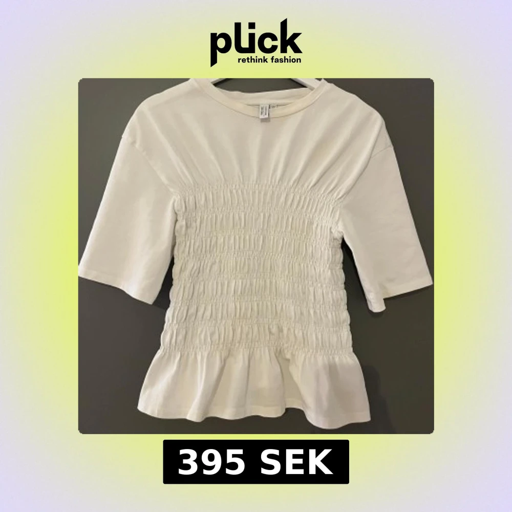 Säljer en söt vit topp från & Other Stories med smockdetaljer och volang nedtill, jättefint skick❤️🔥