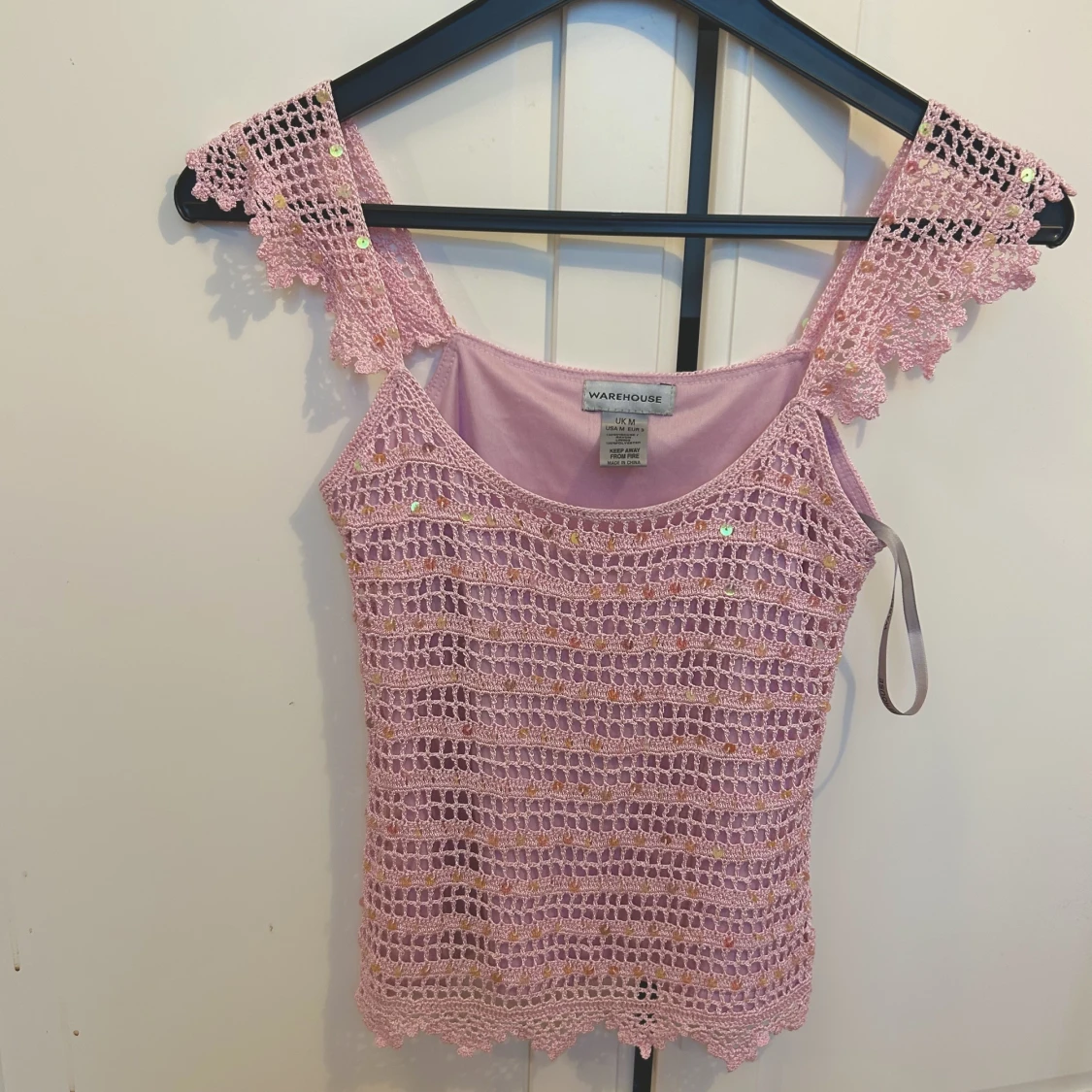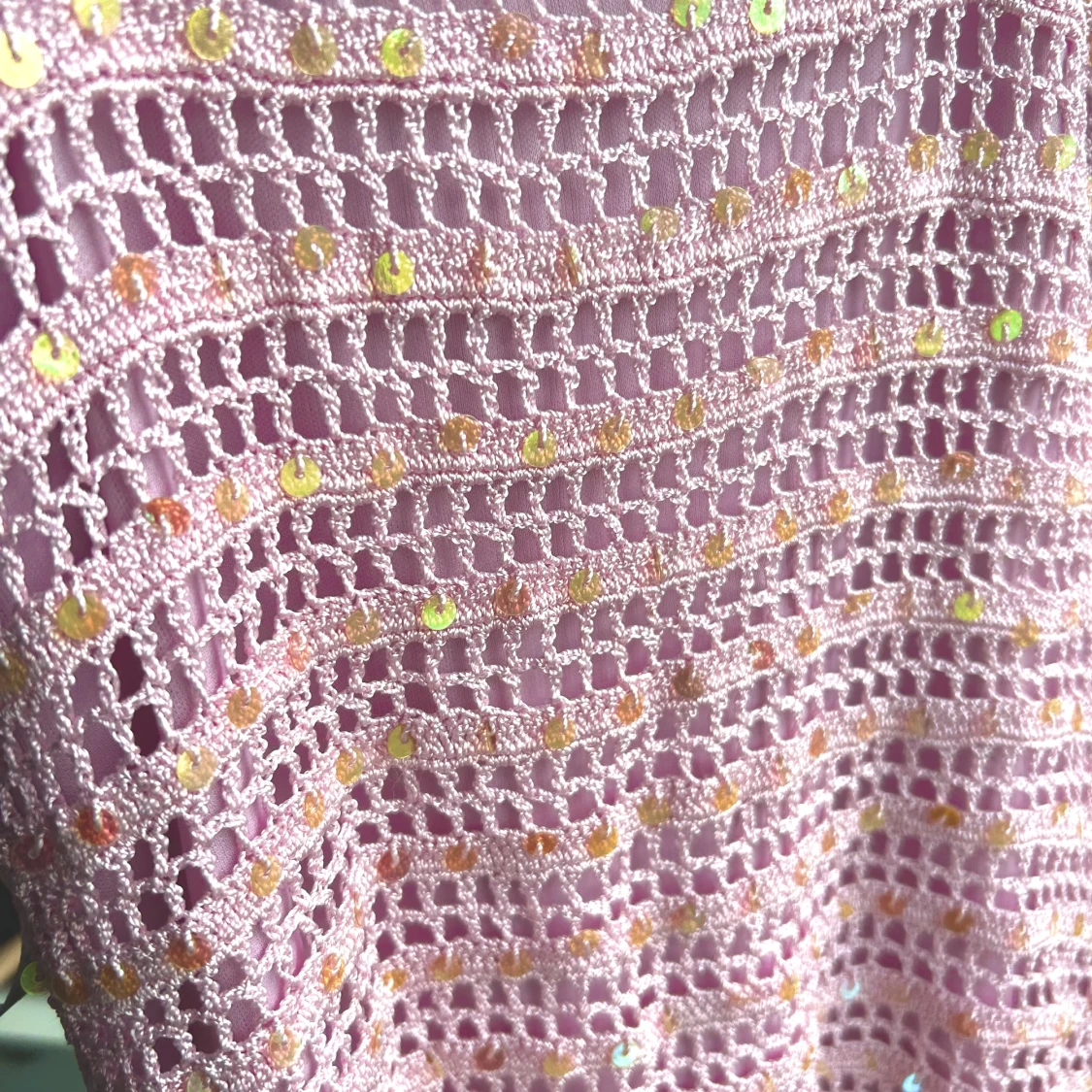 Superfint rosa linne. Köpt vintage. Aldrig andvänt av mig. Harinvirkade paljetter i och passar perfekt nu till sommaren. Märket är warehouse. Storlek m men passar även bra på mig som har s vanligtvis
