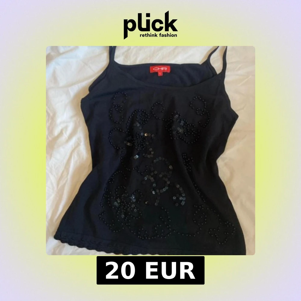 Svart linnetopp från CHR med smala axelband och dekorativa svarta paljetter framtill i ett blommigt mönster. ❣️❣️Passar storlek m-l