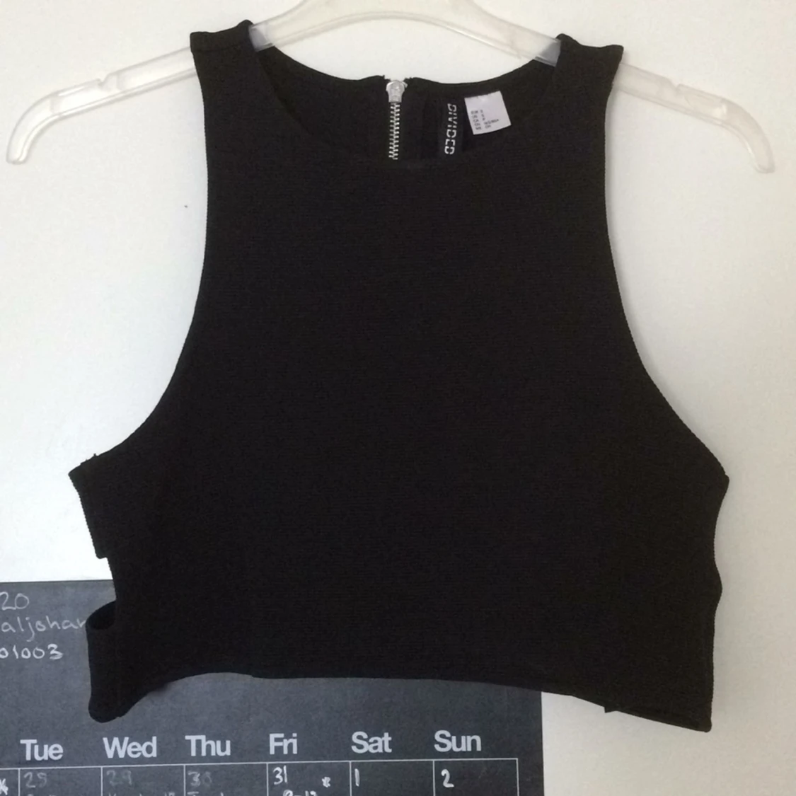 Svart croptop/magtröja som tyvärr aldrig använts då den inte passade. Öppen i sidan av ryggen och är perfekt till fest!