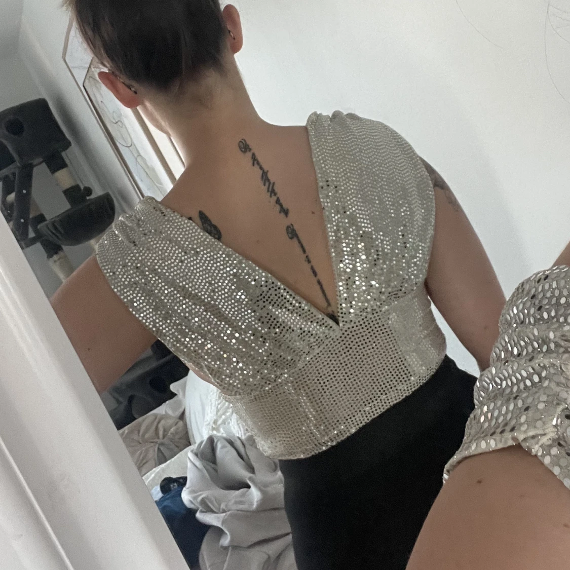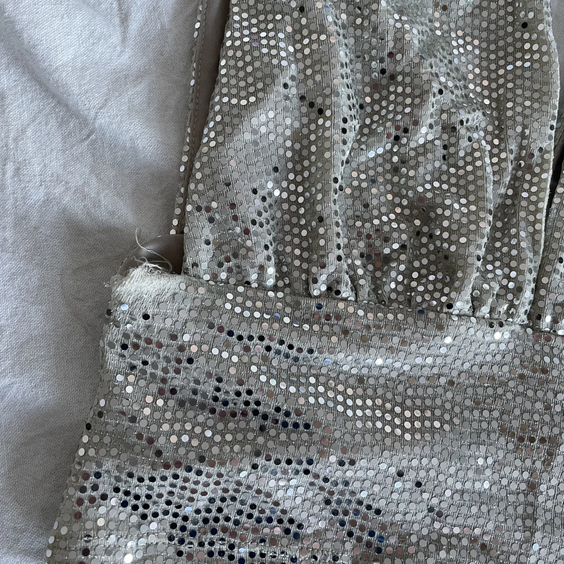 Paljett/glitter topp från Gina Tricot i storlek S. Använd ett fåtal tillfällen. Den är lite sliten men annars i bra skick.