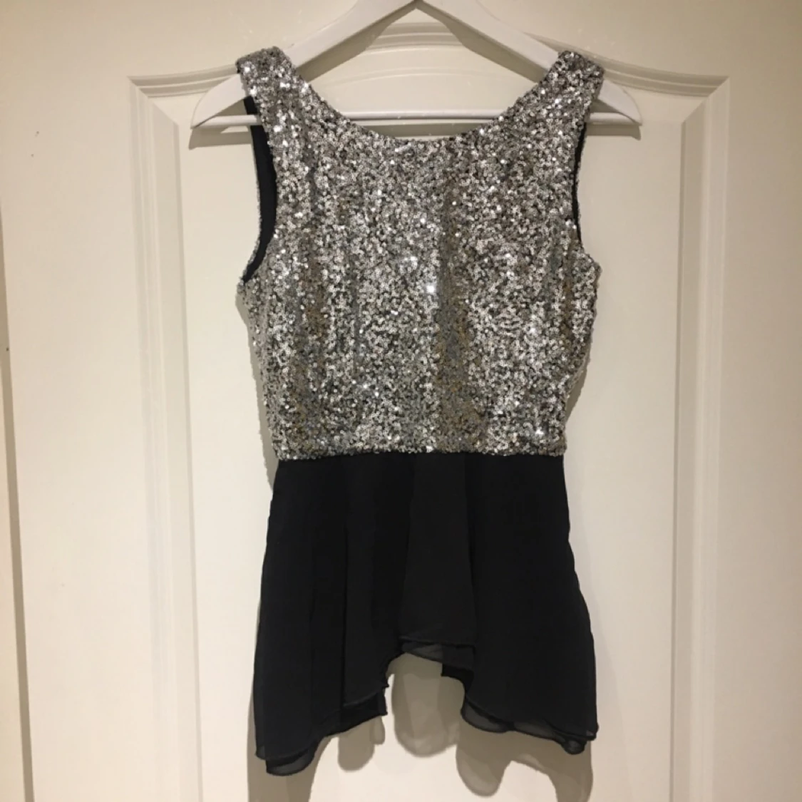 En peplumtopp från Sisters point i storlek S, passar också storlek M. Fin, silvrig glitteröverdel, V-tingad bak på rygg.