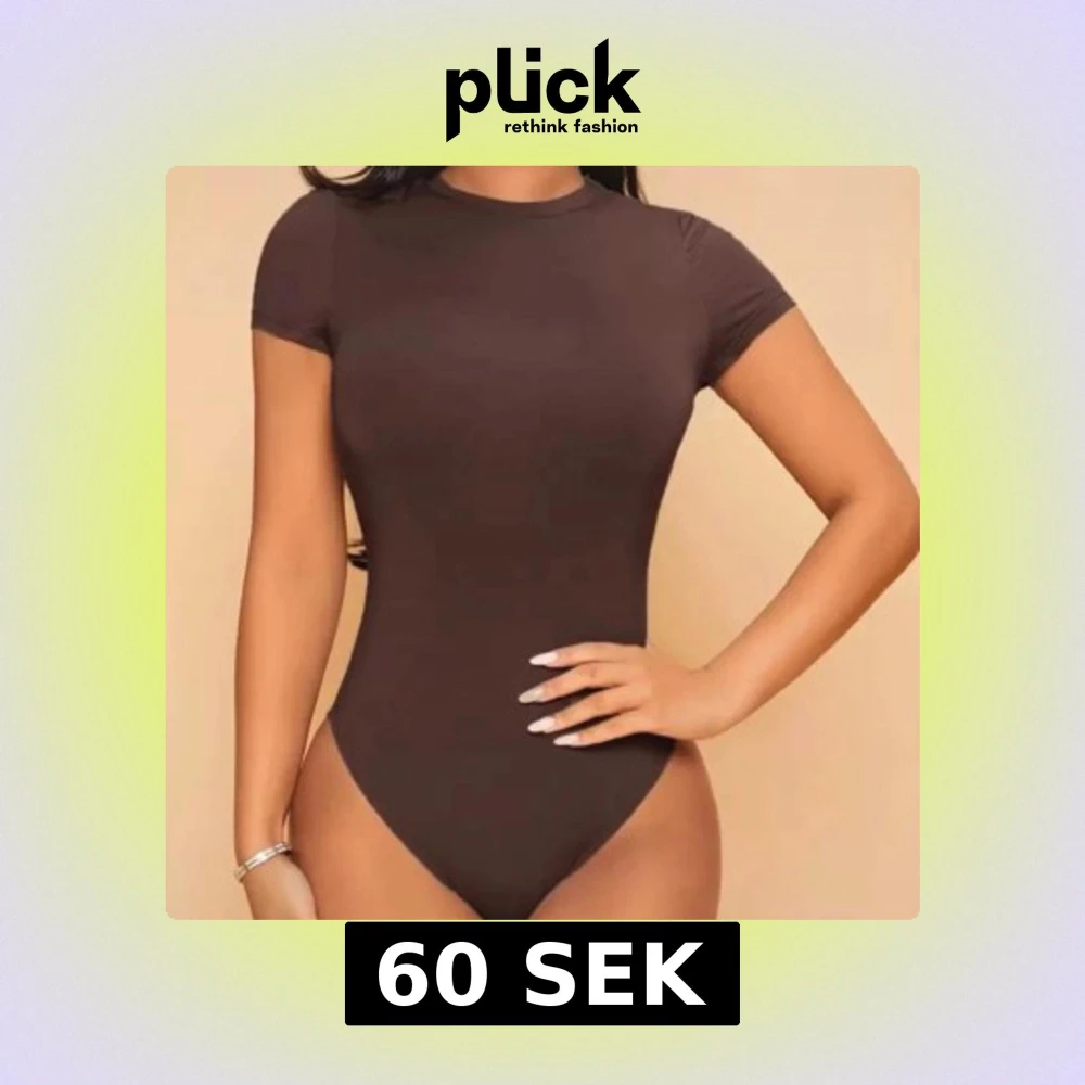Slimmad brun bodysuit från SHEIN i storlek Petite M. Modellen har korta ärmar, rund hals och är tillverkad i mjuk bomull. Perfekt för att skapa en clean och snygg siluett under jeans eller kjol. Enkel och stilren design utan detaljer.