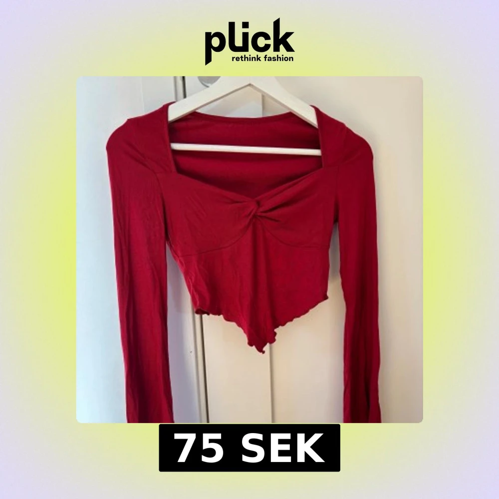 Snygg röd långärmad topp med en twistdetalj framtill och croppad design. Perfekt för att ge en trendig touch till din outfit.
