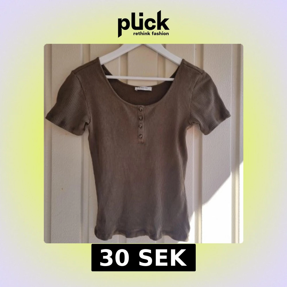 Toppen har rund halsringning och fyra knappar. Materialet är stretchigt med en enkel och stilren design. Det står storlek L men tycker den känns mindre på mig som har M oftast.