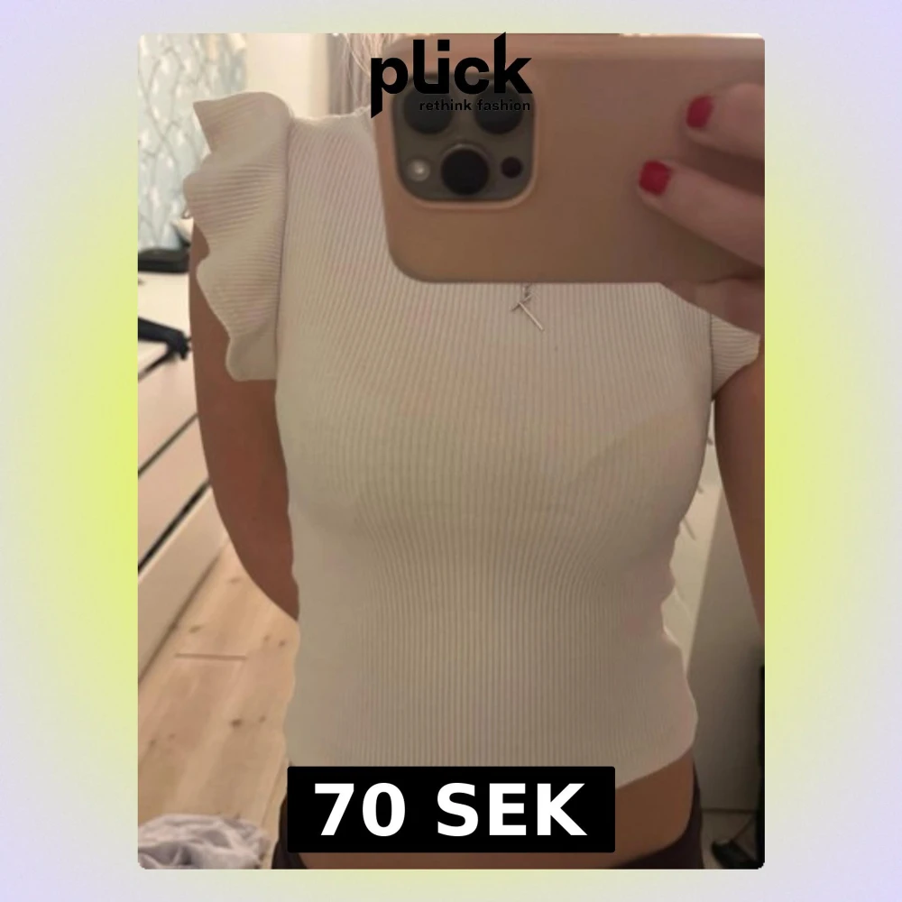 Supersöt vit ribbad topp med volangärmar och rund halsringning. Toppen är croppad och har en tight passform som framhäver figuren. Perfekt att styla med jeans eller kjol för en fräsch look.