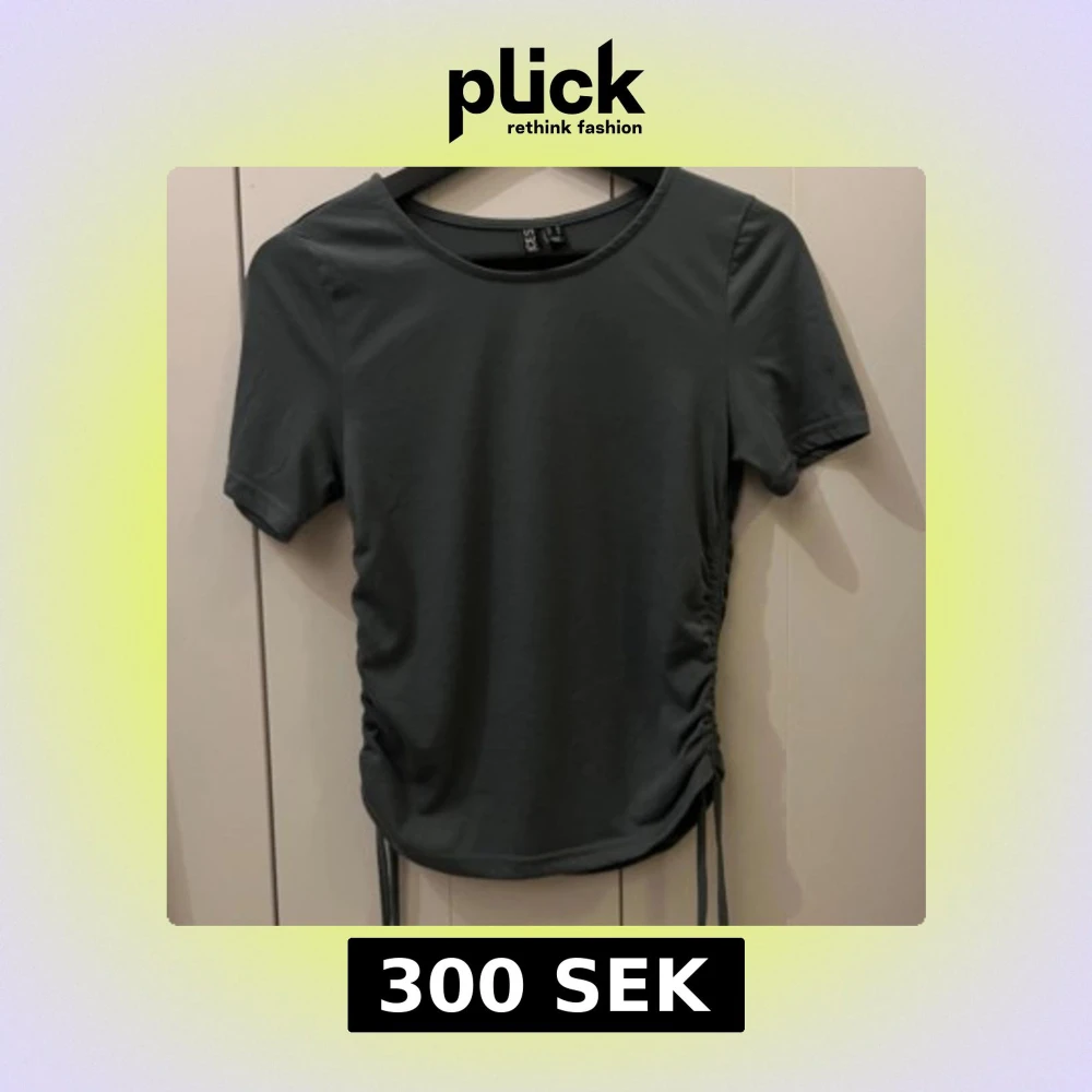 Säljer en stilren mörkgrön topp från Pieces i storlek M. Toppen har korta ärmar och en snygg rynkdetalj på sidorna som ger en fin passform. Perfekt för en avslappnad look. Imprincip helt ny och aldrig använd