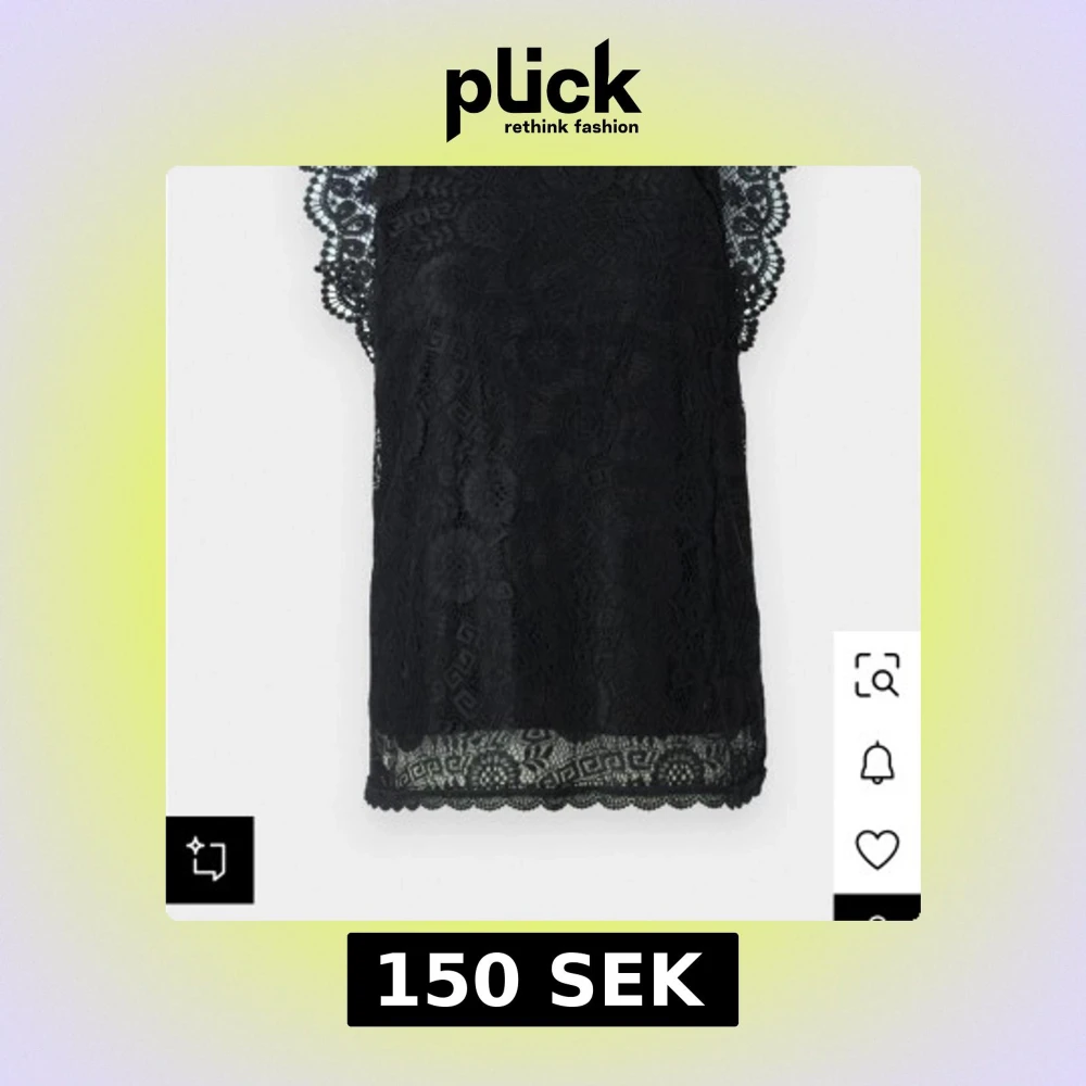 Snygg svart kortärmad topp med spetsdetaljer och rund hals. Toppen har ett vackert spetsmönster över hela tyget och dekorativa kanter vid ärmar och nederkant. (Pris kan ändras )