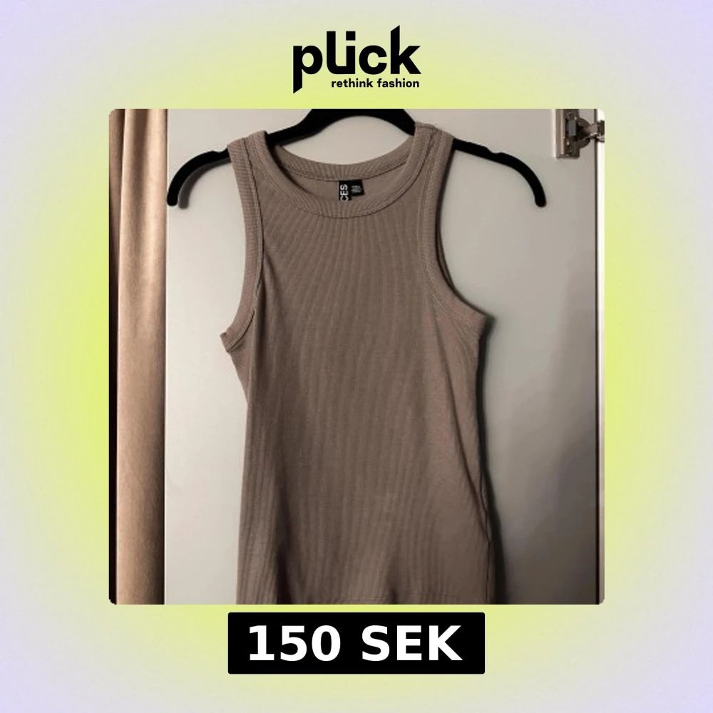 Säljer en stilren beige ribbad linnetopp från Pieces. Toppen är ärmlös med rund halsringning och har en tight passform som sitter snyggt på kroppen. Perfekt att matcha med jeans eller kjol för en clean look.