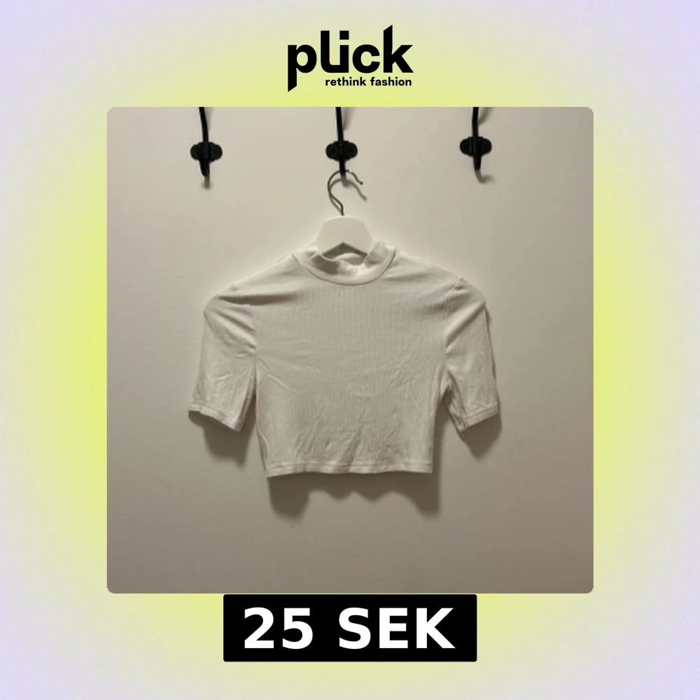 En stilren vit croppad topp med ribbad struktur och korta ärmar. Toppen har en högre halsringning och är perfekt för att matcha med höga jeans eller kjol. Enkel och clean design som passar till många olika looks.