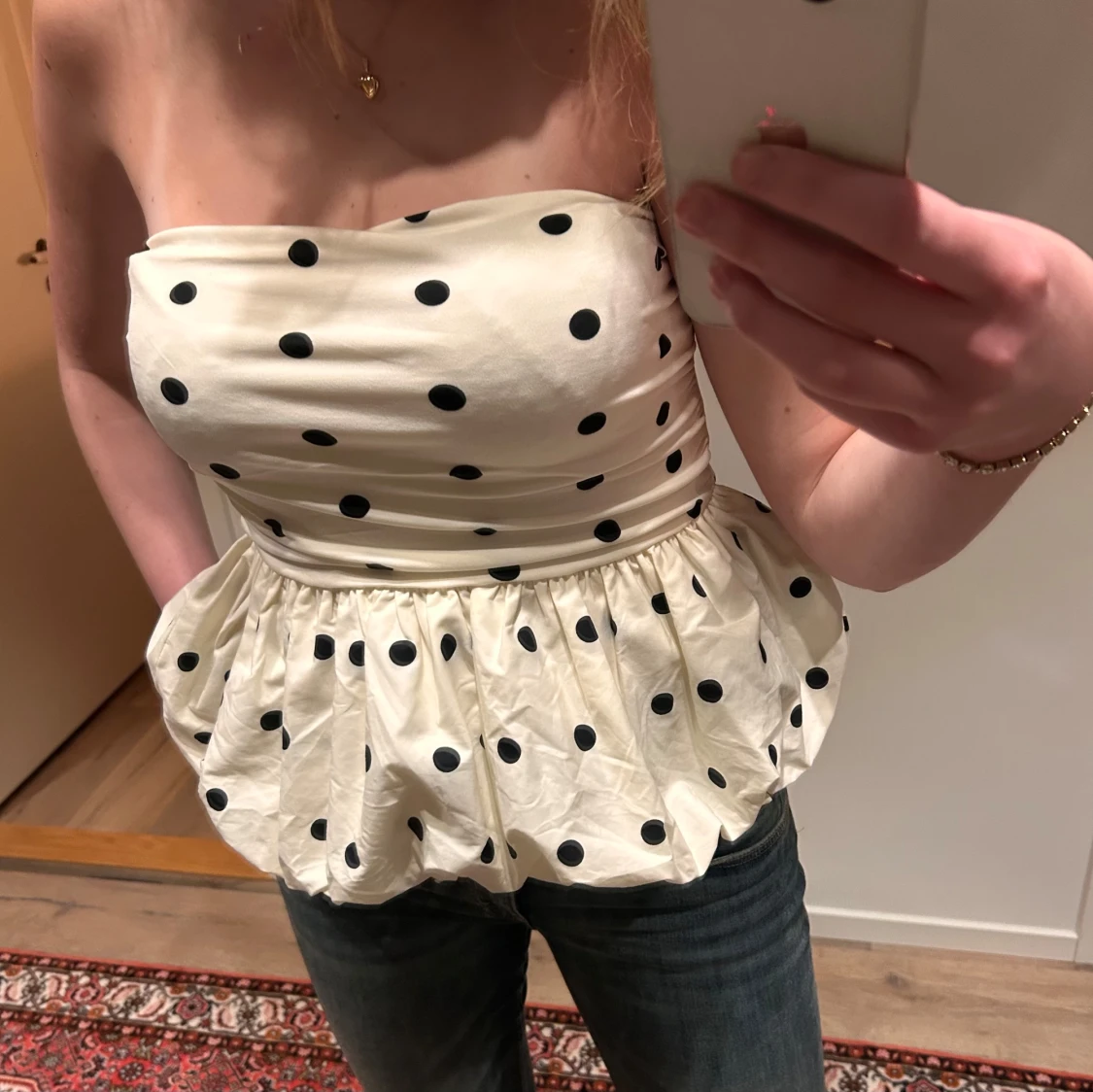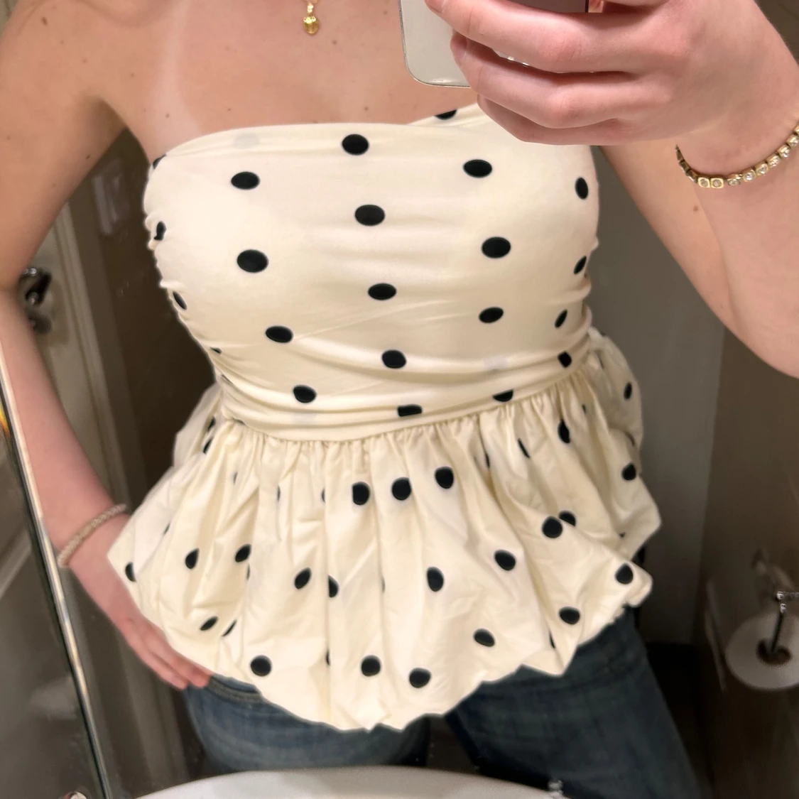 Söt prickig topp från HM, storlek xs men passar S också!