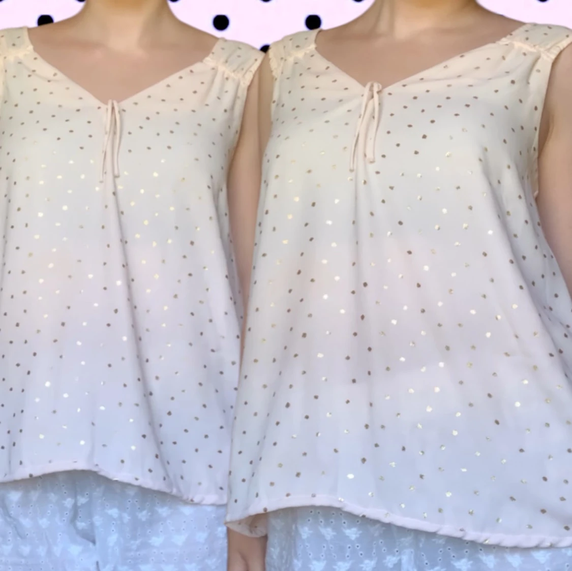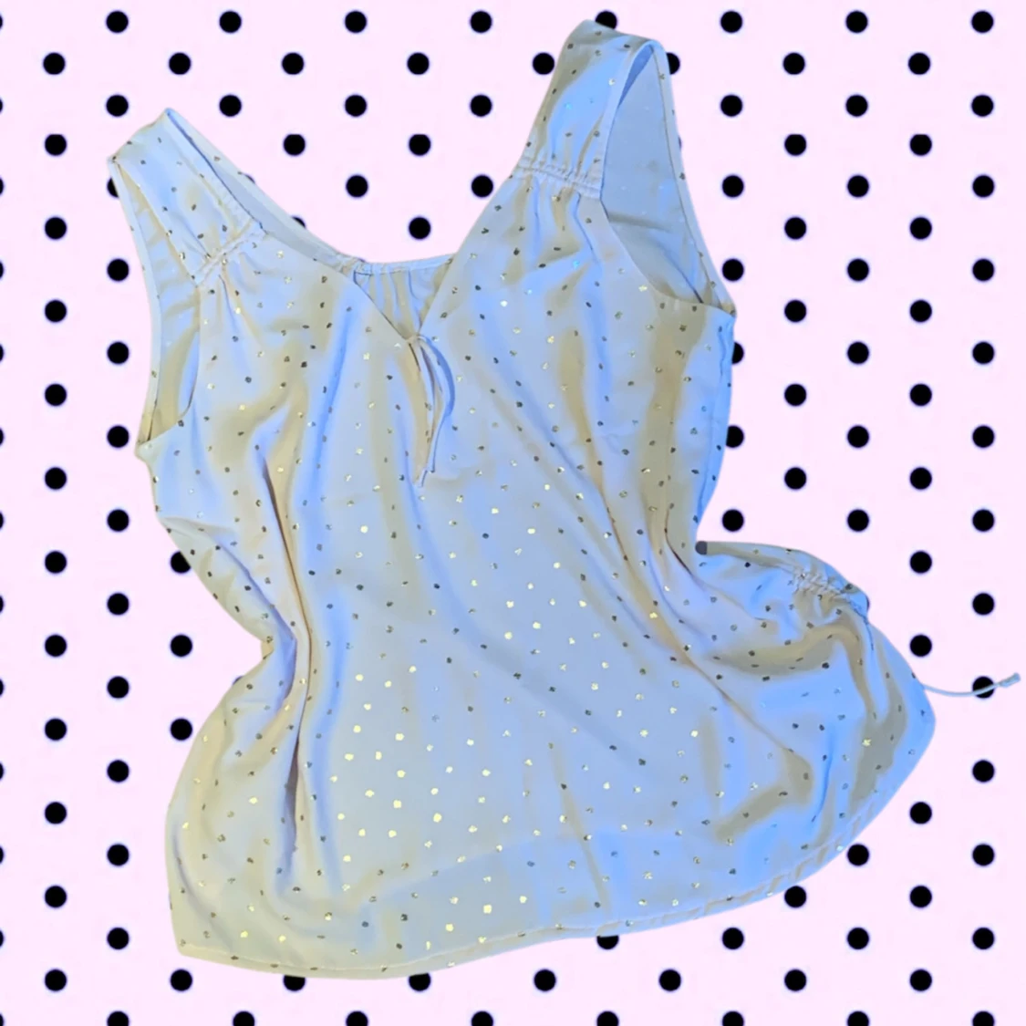 Supersöt ljusrosa linnetopp med små guldiga prickar. Superlätt och bekväm!
