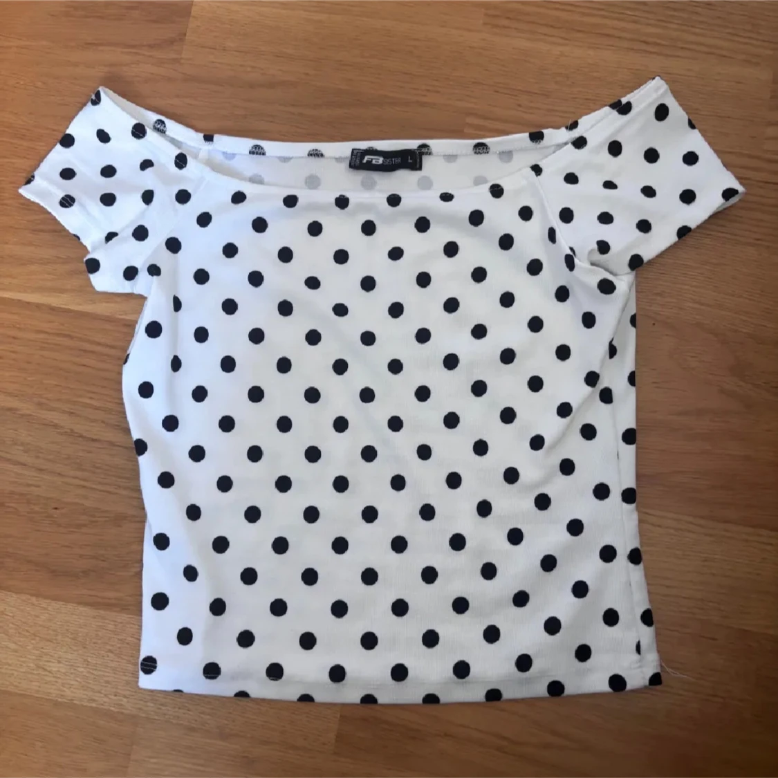 Superfin prickig offshoulder topp!! Helt oanvänd. Storlek L, men väldigt liten i storlek, snarare S🥰🥰🥰