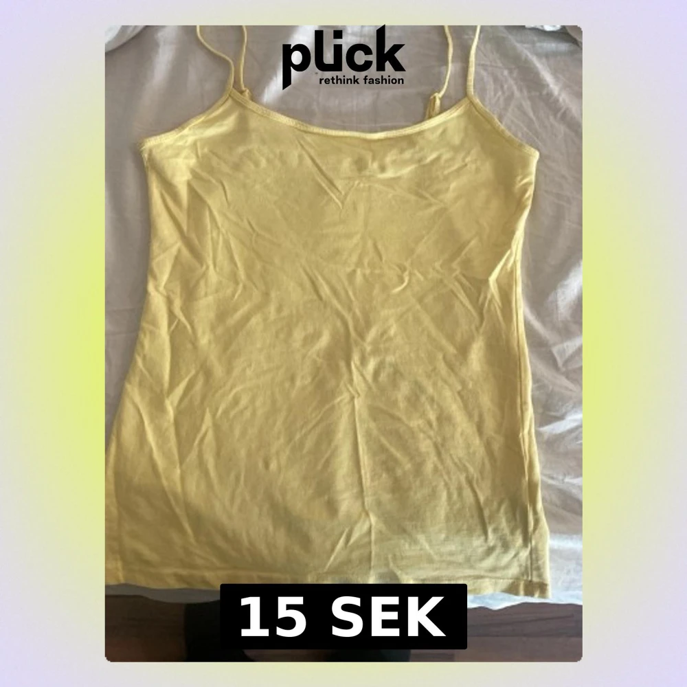 Säljer en enkel och stretchig gul linnetopp från Primark med tunna axelband. Toppen är rak i modellen och gjord i mjuk bomullsblandning, perfekt för varma dagar eller som layering-piece.