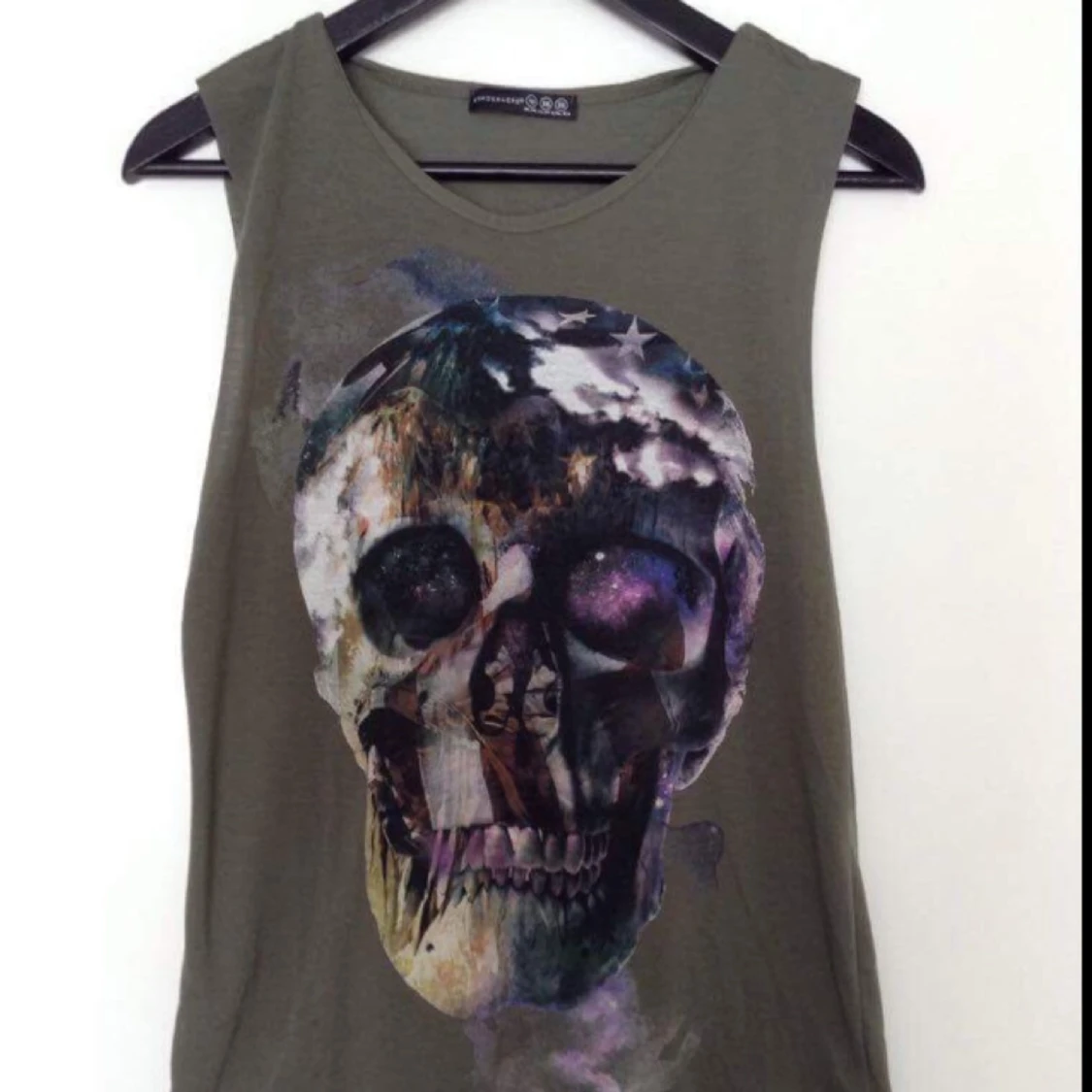 Muscle tank med döskalle tryck. Militärgrön basfärg.