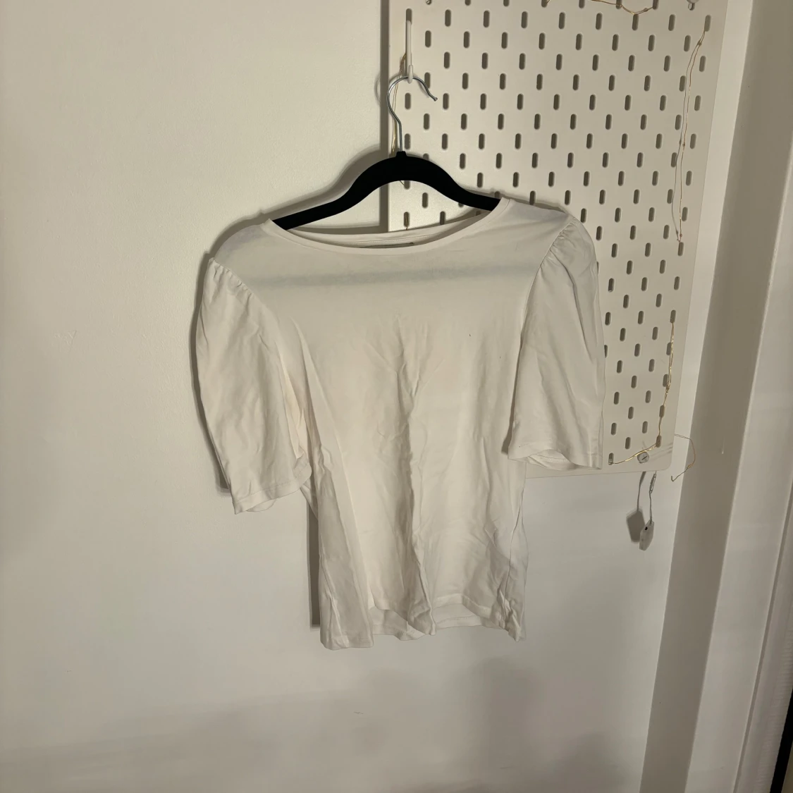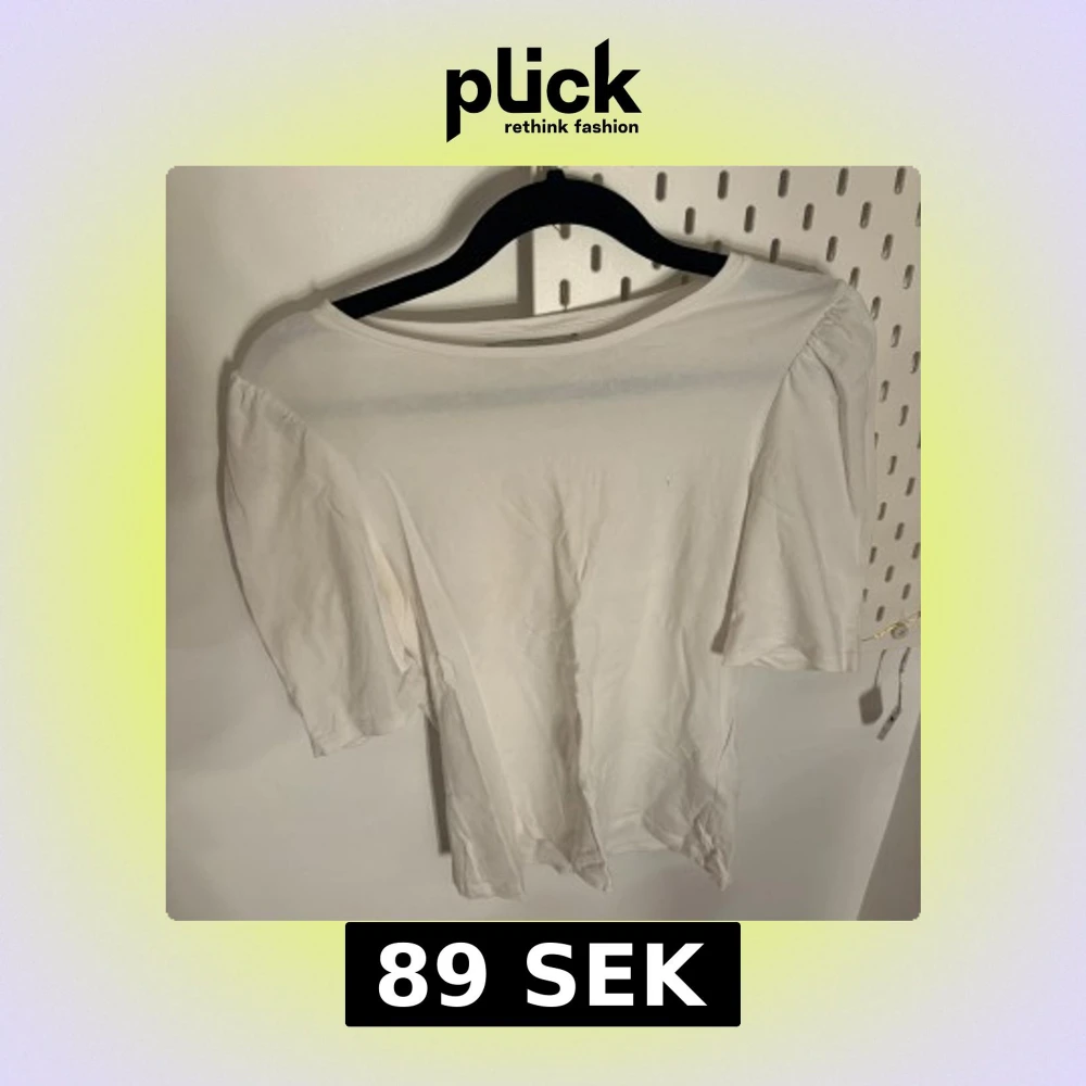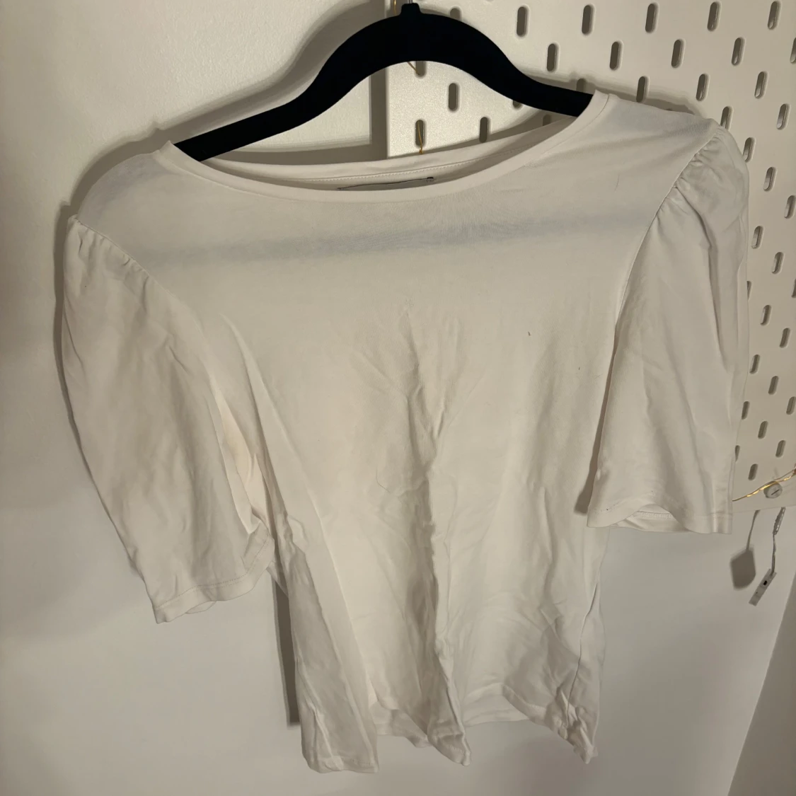 Säljer en enkel och stilren vit t-shirt med korta ärmar. Perfekt basplagg för alla tillfällen. Passar bra till jeans eller kjol.