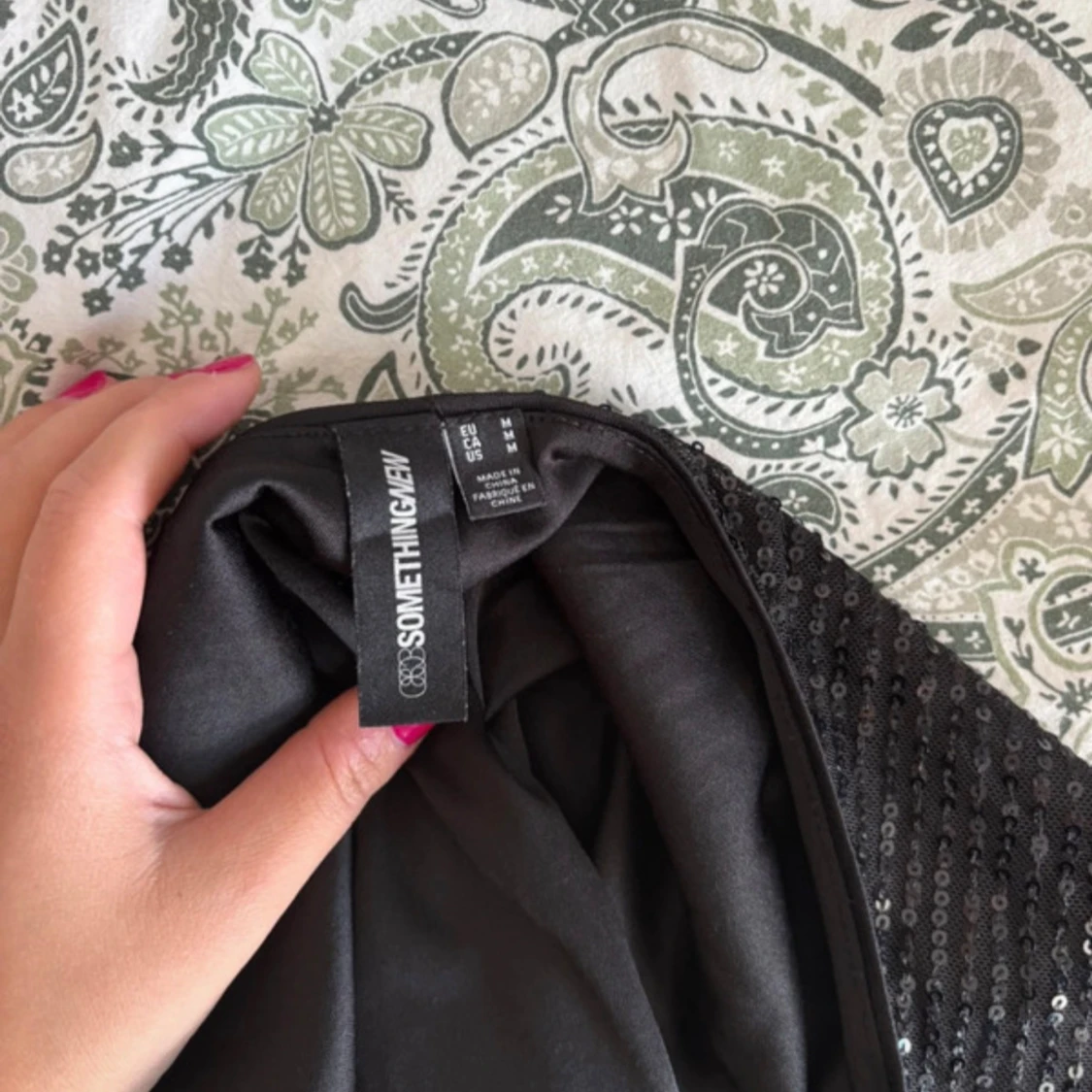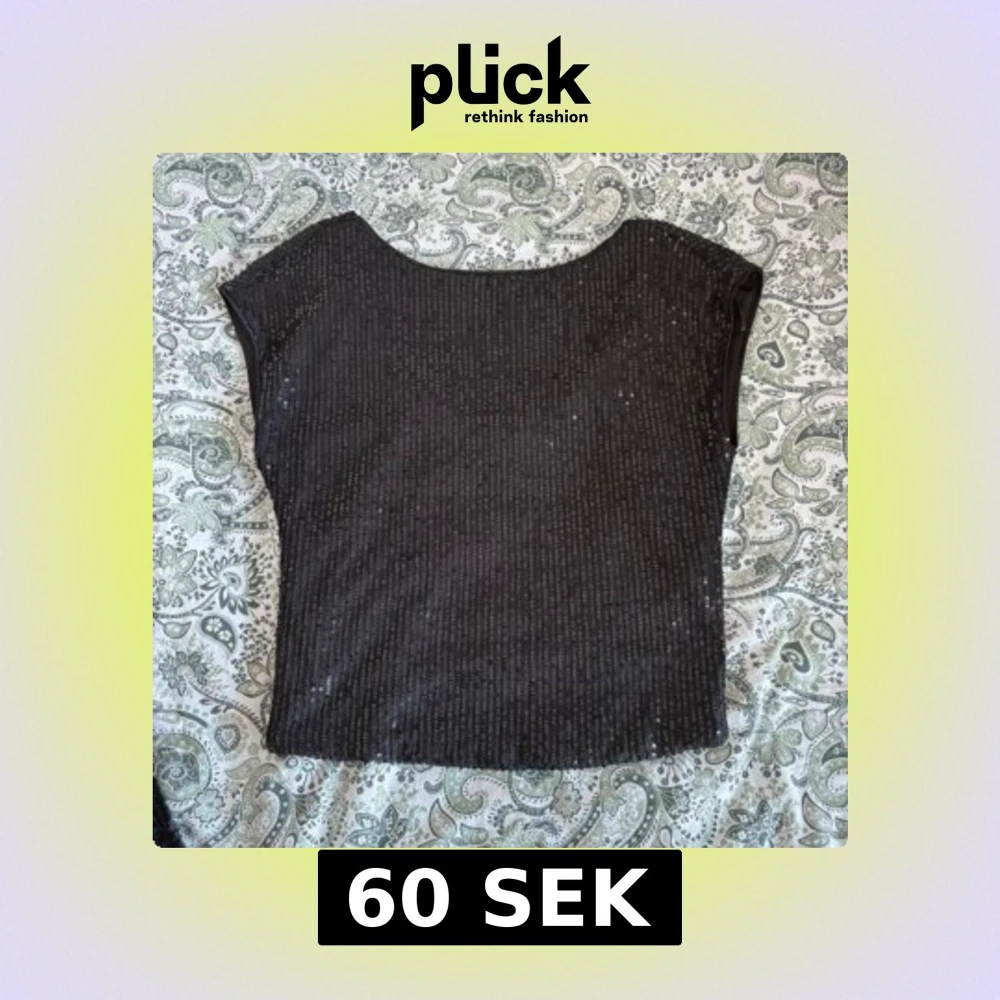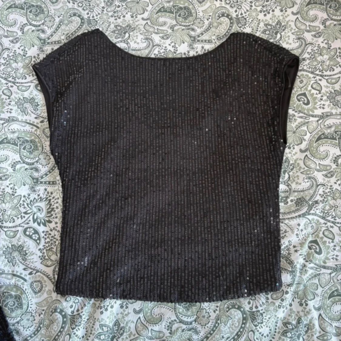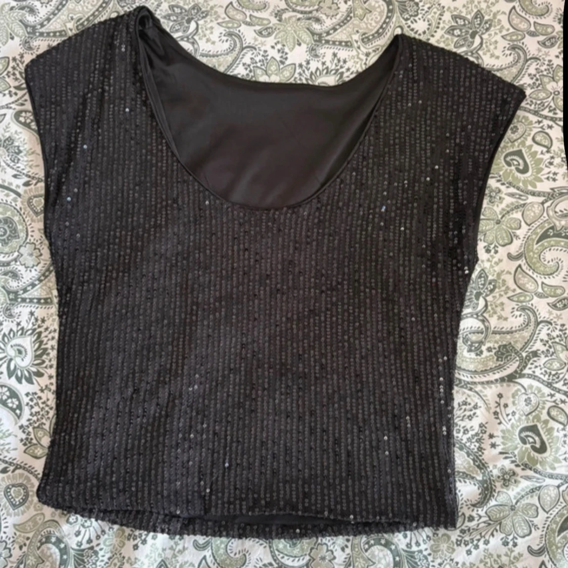 Säljer en svart croppad topp från pull and bear med glittriga paljetter över hela ytan.