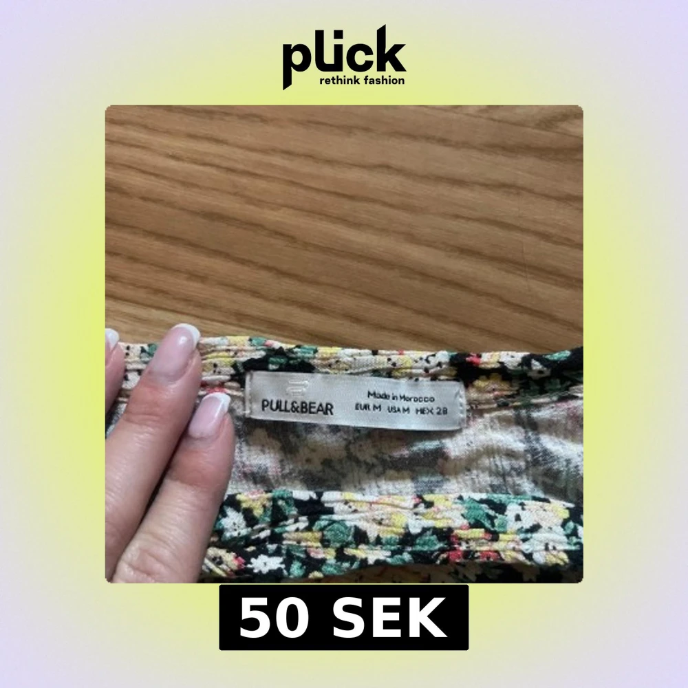 Supersöt croppad omlottopp från Pull&Bear med blommigt mönster i grönt, vitt, beige och rosa. Toppen har volangdetaljer vid axlarna och v-ringning, samt smockad nederkant för en snygg passform. Perfekt för vår och sommar!