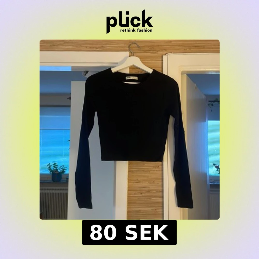 En svart, croppad långärmad topp från Pull&Bear. Enkel och stilren design med rund halsringning och tight passform. Perfekt att matcha med höga jeans eller kjol för en clean look.