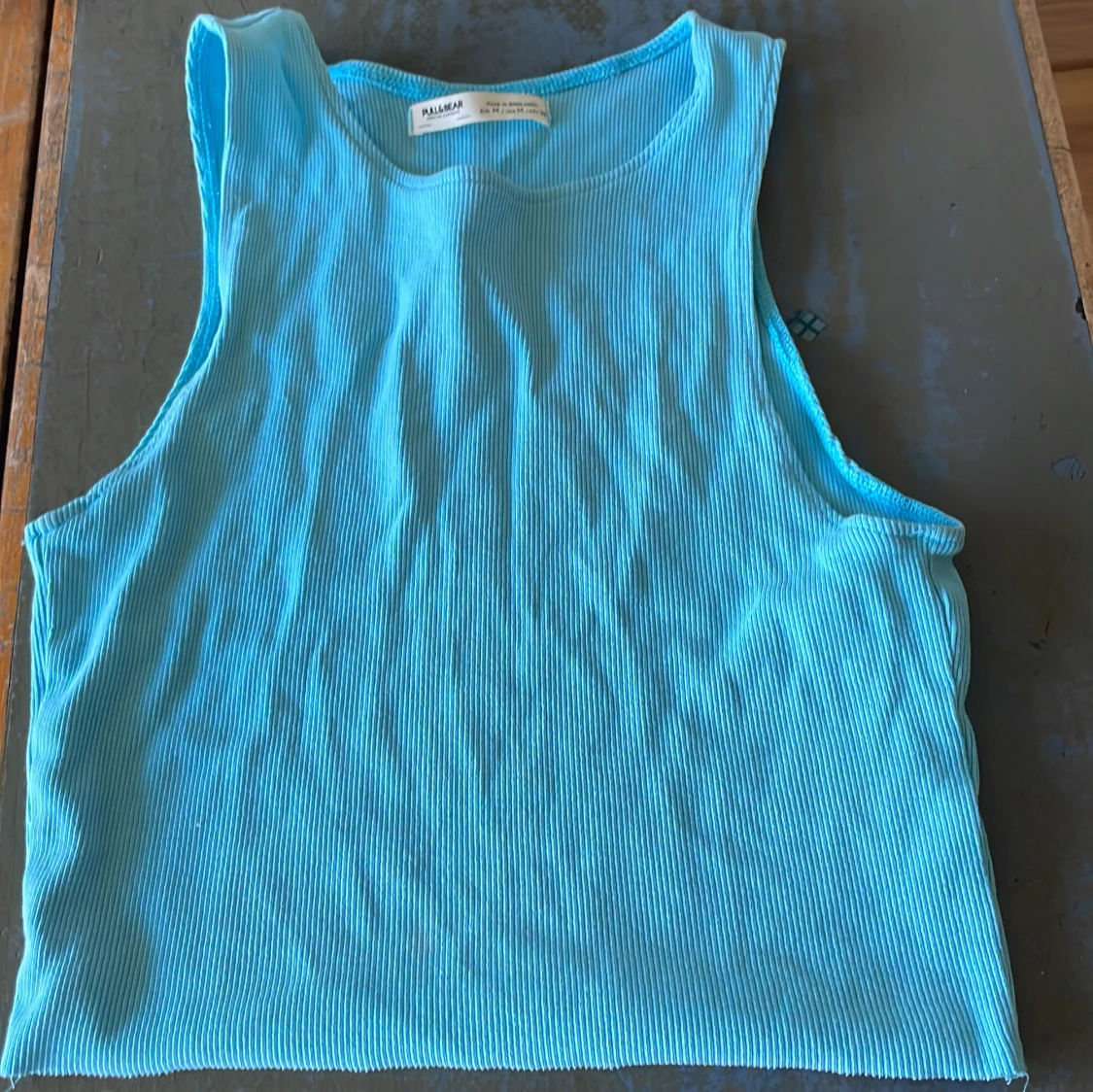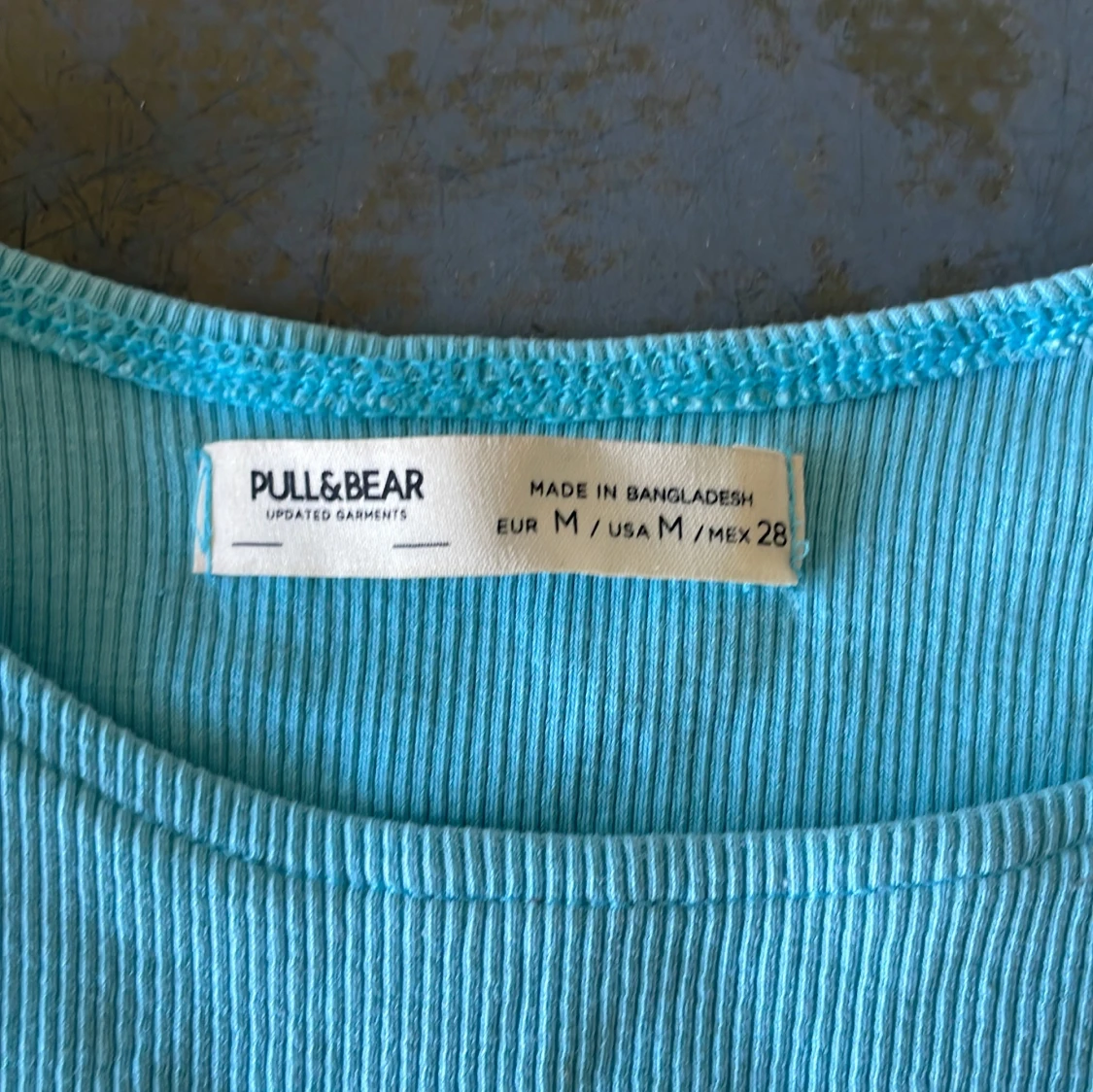 Säljer en turkos ribbad linnetopp från Pull&Bear i storlek M. Toppen är ärmlös med rund halsringning och har en tight passform. Perfekt för varma dagar eller att styla lager på lager. Enkel och fräsch färg som sticker ut.
