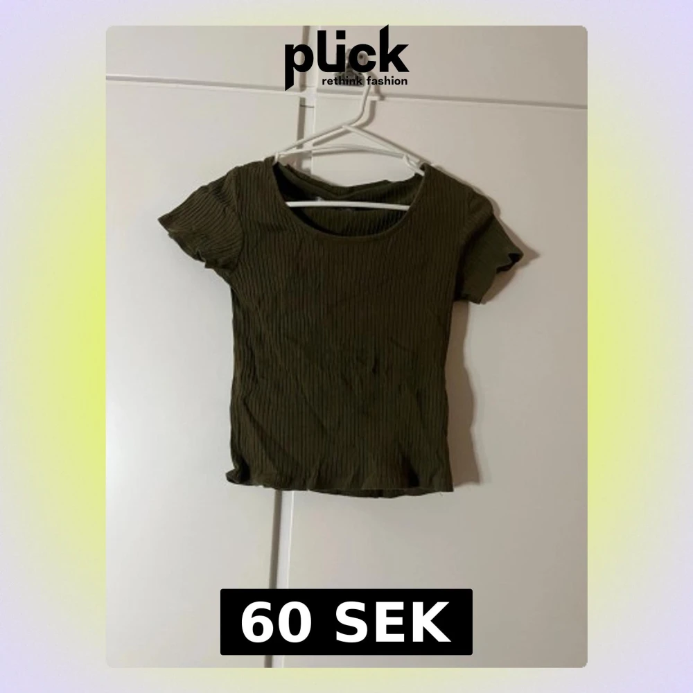 Säljer en olivgrön ribbad topp från Pull&Bear i storlek M. Toppen har korta ärmar, rund halsringning och är tillverkad i ett mjukt, stretchigt material. Perfekt till jeans eller kjol för en enkel och snygg look.