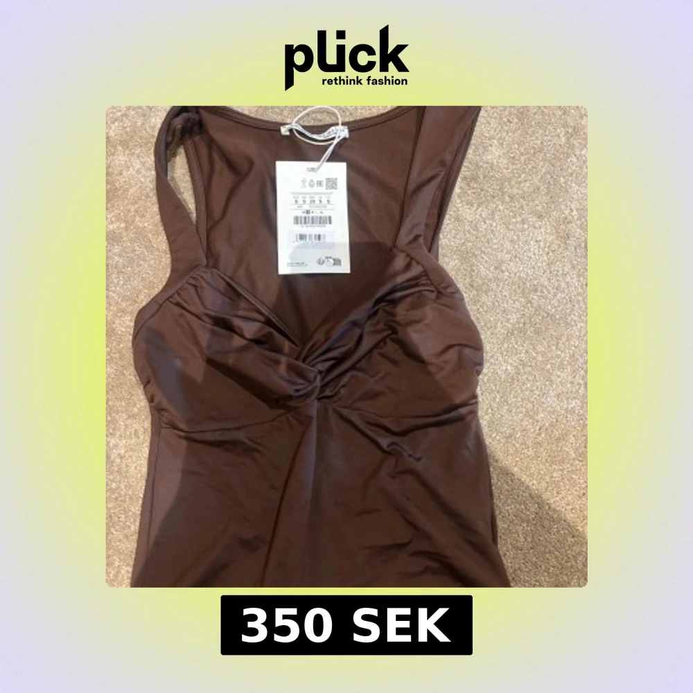 Supersnygg brun linnetopp från Pull&Bear med twistad detalj framtill och breda axelband. Helt ny. Köpt för 400 kr.