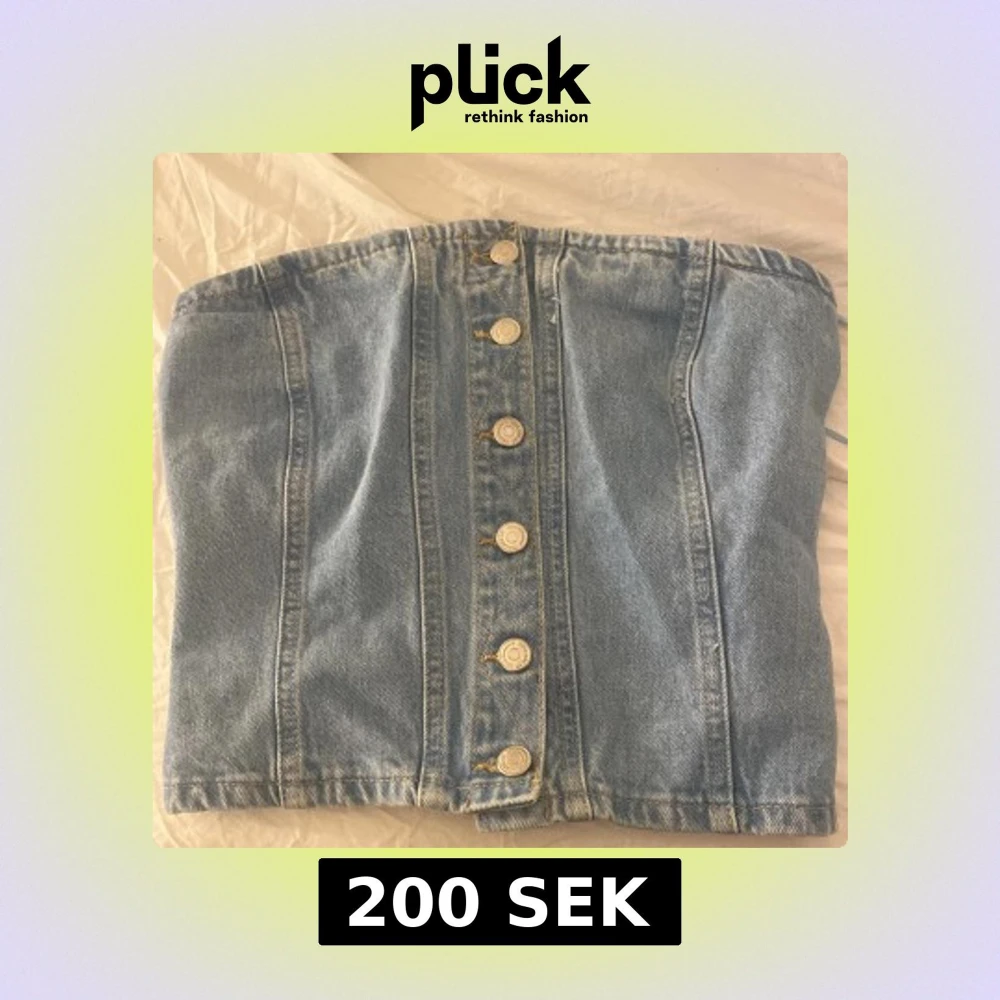Snygg jeans korsett i ljusblå denim med knappar framtill. Perfekt för en trendig look. Baksidan har elastiska detaljer för bättre passform.