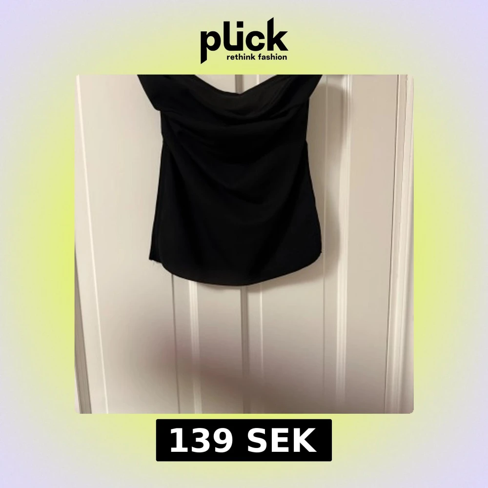 Snygg svart tubtopp med axelbandslös design och lätt draperad framsida. Perfekt för att skapa en stilren och trendig look. Enkel att matcha med både jeans och kjol.