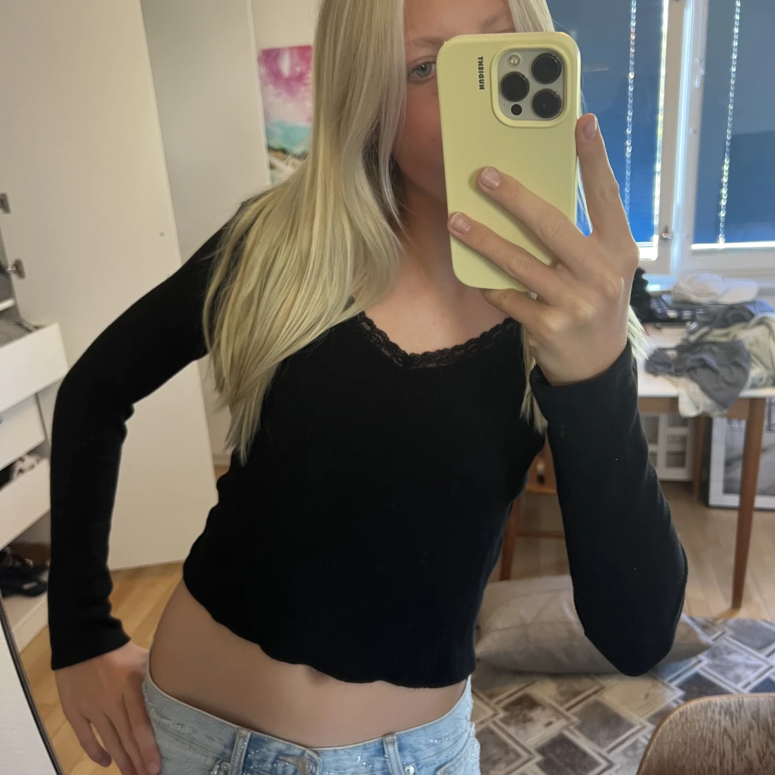 En stickad långärmad tröja från med lite spetsdetaljer vid urringningen!💗