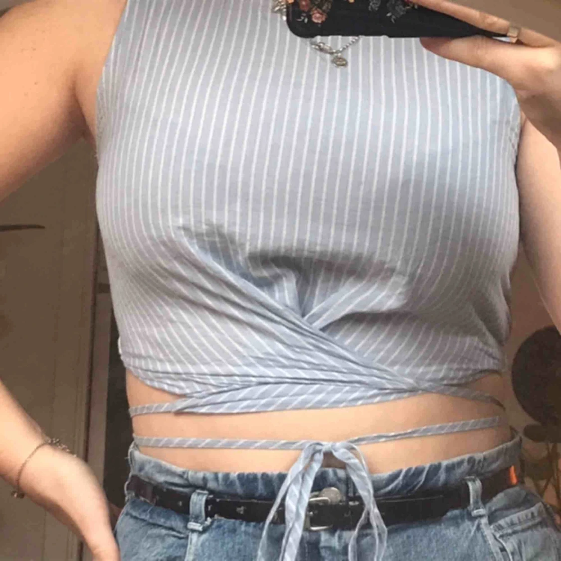 Himmelsblå topp med fasta snören att knyta runt midjan. Köpt på Pull&Bear i storlek M. Hyfsat använd. Kontakta om du är intresserad!