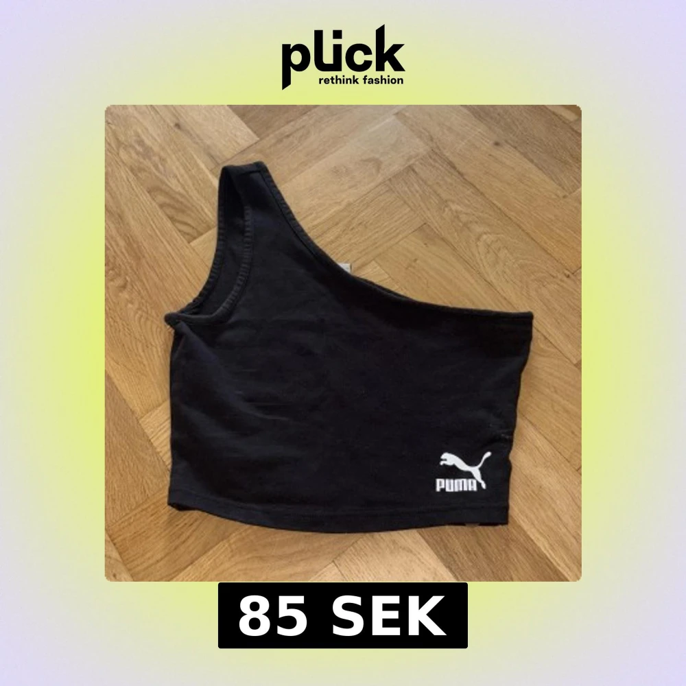 Svart one shoulder topp från Puma med vit logga framtill. Snygg och sportig design med asymmetrisk axel, perfekt för att sticka ut. Tillverkad i mjuk bomull som känns skön mot huden. Passar dig som gillar en clean och modern look.