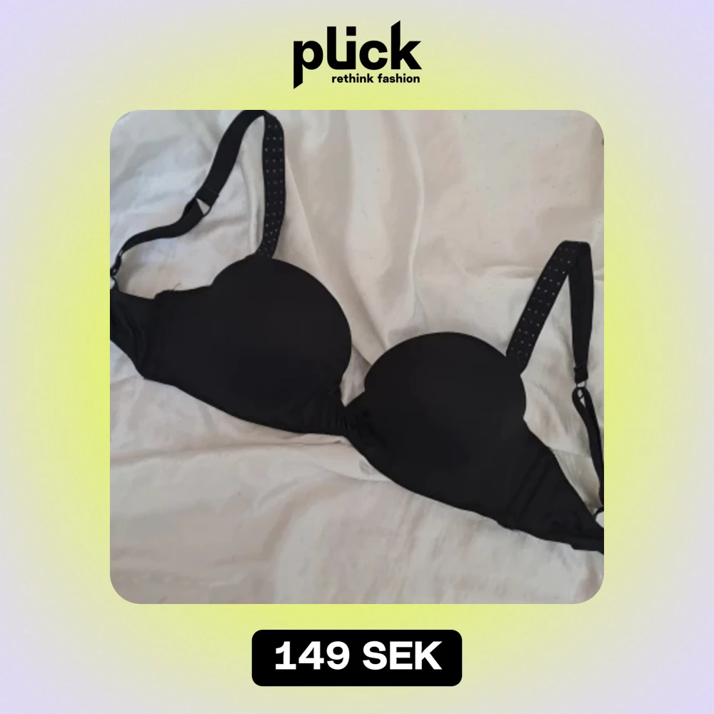 Säljer en elegant svart BH från H&M i storlek 70C. Den har snygga strassdetaljer på axelbanden som ger en extra touch av glamour. Materialet är en blandning av polyamid och elastan vilket gör den både bekväm och stretchig. Perfekt för festliga tillfällen!