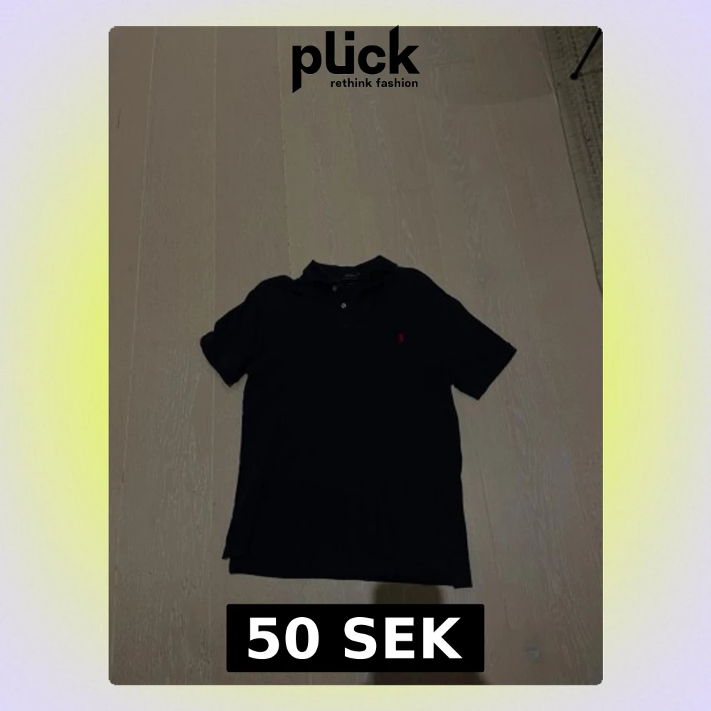 Klassisk mörkblå pikétröja från Polo Ralph Lauren med röd broderad logga på bröstet. Tröjan har korta ärmar, krage och två knappar framtill. Slim fit-modell som passar perfekt till jeans eller shorts.