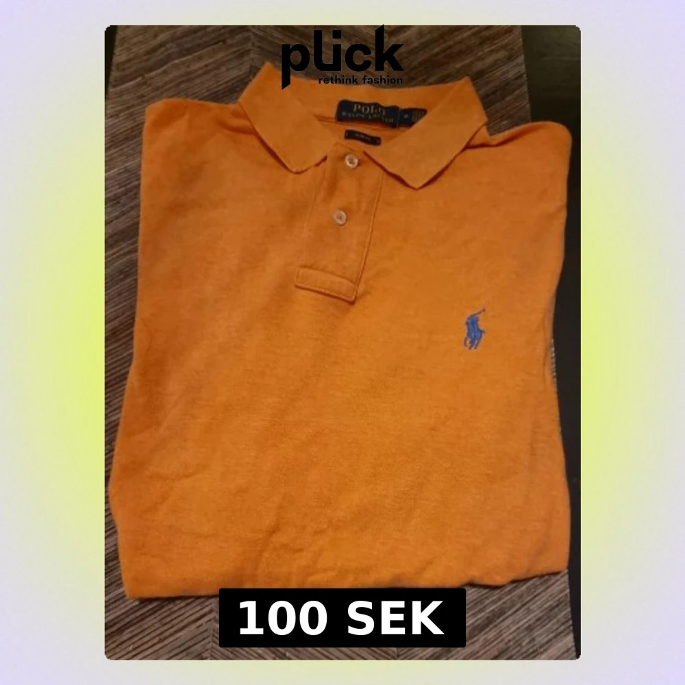 Säljer en orange pikétröja från Polo Ralph Lauren i storlek m, slim fit. Tröjan har klassisk krage, två knappar och den ikoniska blå broderade loggan på bröstet. Tillverkad i mjuk bomull och har korta ärmar. Perfekt för en avslappnad men ändå stilren look.
