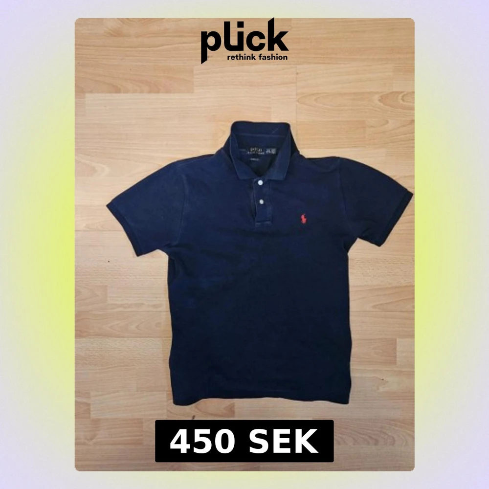 Klassisk marinblå pikétröja från Ralph Lauren med korta ärmar och krage. Tröjan har två knappar framtill och den ikoniska röda broderade loggan på bröstet. Perfekt till jeans eller shorts för en clean och stilren look.