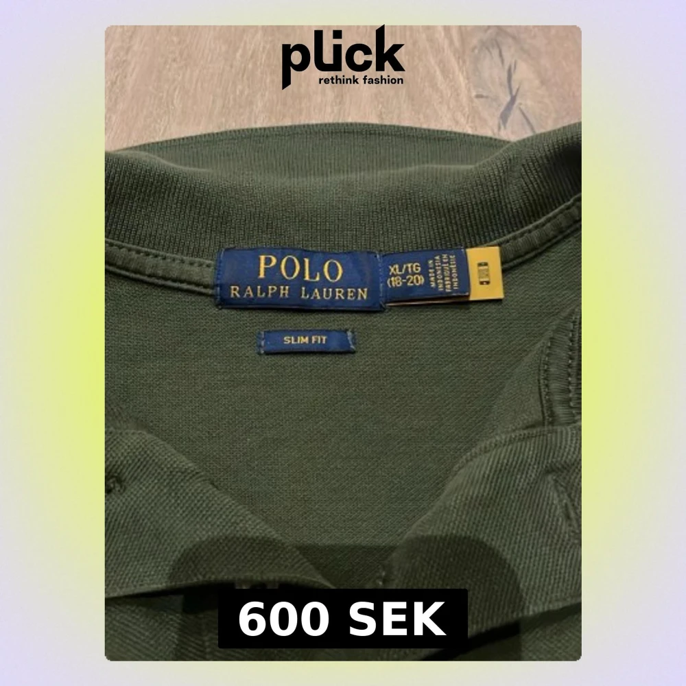 Säljer en mörkgrön pikétröja från Polo Ralph Lauren i slim fit-modell. Tröjan har klassisk krage, korta ärmar och två knappar framtill. På bröstet finns den ikoniska gula Polo-loggan broderad. Materialet är mjuk bomull som känns skönt mot huden. XL i barn men Small/ Xs i vuxen