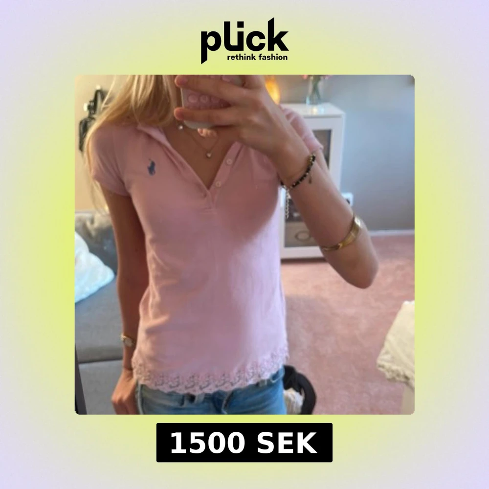 Söt ljusrosa pikétopp från Ralph Lauren med klassisk krage, korta ärmar och knappar framtill. Liten blå logga på bröstet och spetsdetalj längs nederkanten som ger en extra feminin touch. Perfekt till jeans eller kjol.
