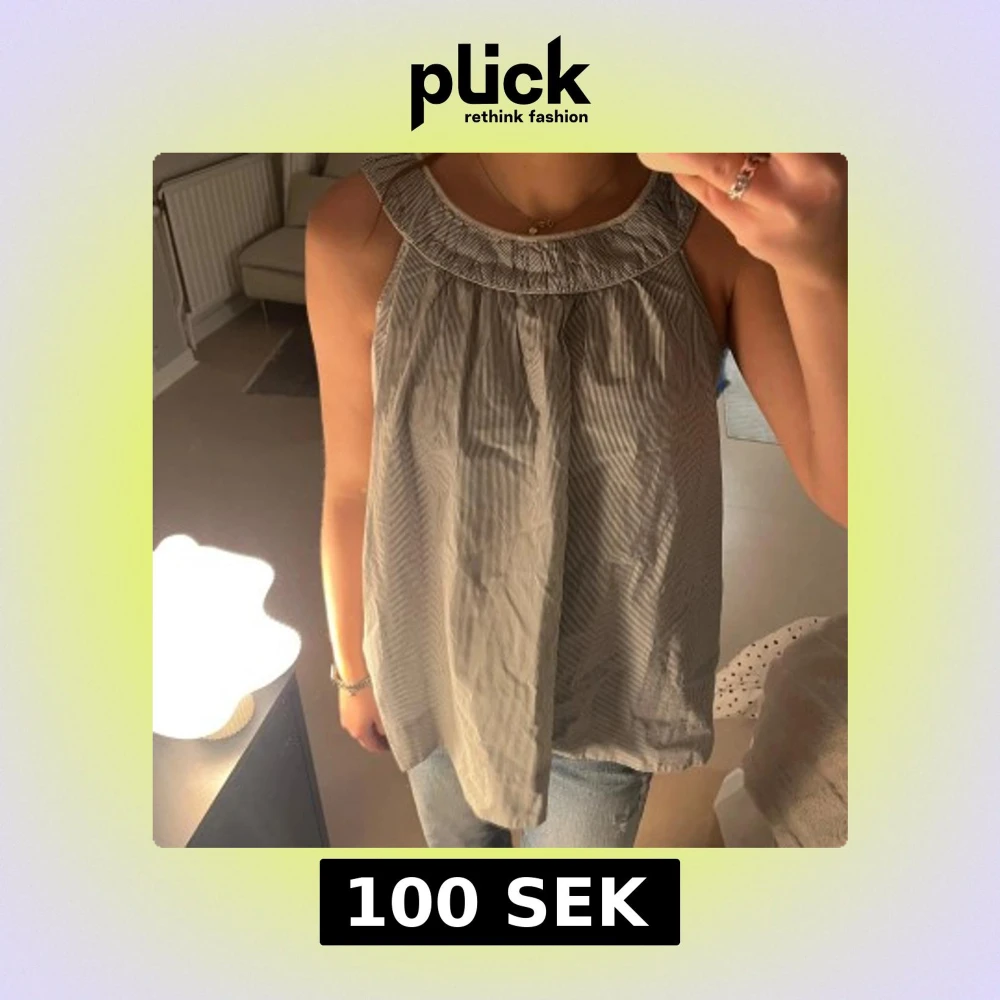 Säljer en snygg blus från French Connection i vitt och grått med tunna ränder.