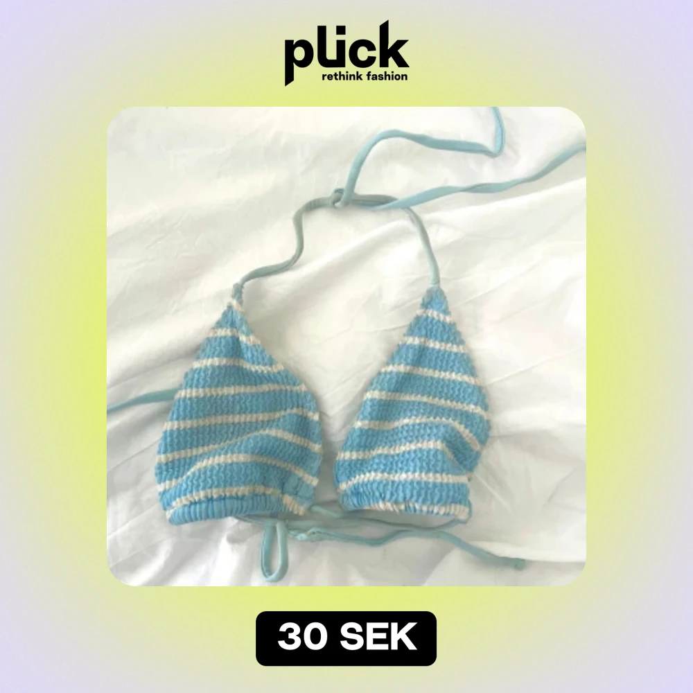 Söt baby blå/vit randig bikini top med snöre strl S. Märke okänd. Använd fåtal gånger. Super bra skick 🩵(öppen för pris förslag)
