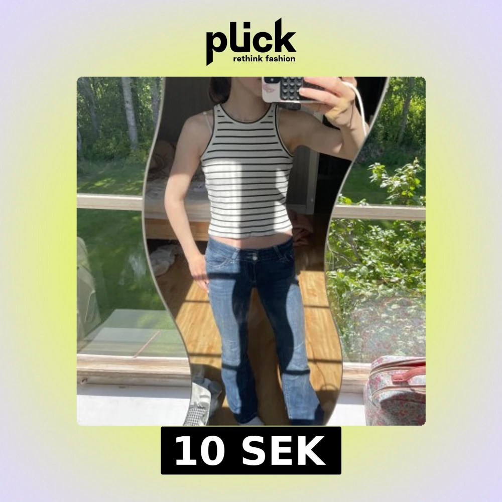 Snygg croppad linnetopp från Lindex i vitt med svarta horisontella ränder. Toppen är ärmlös med rund halsringning och ribbad struktur, perfekt för en avslappnad och trendig look. Superenkel att matcha med jeans eller kjol.