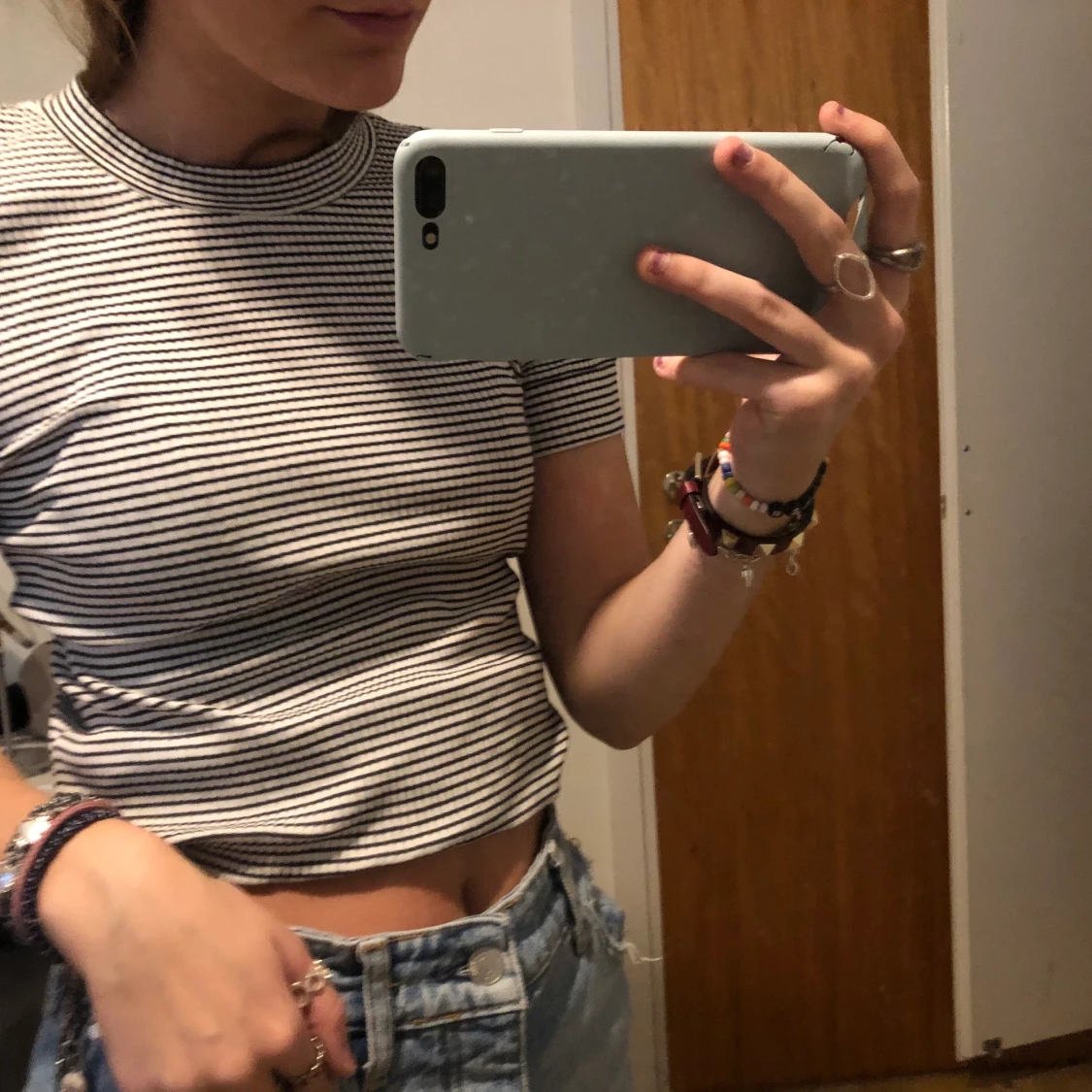 Vit/svart randig topp från Just i storlek Xs. Är ganska oanvänd och är i bra skick. Är väldigt stretchig i materialet. Säljer för 50kr + frakt.