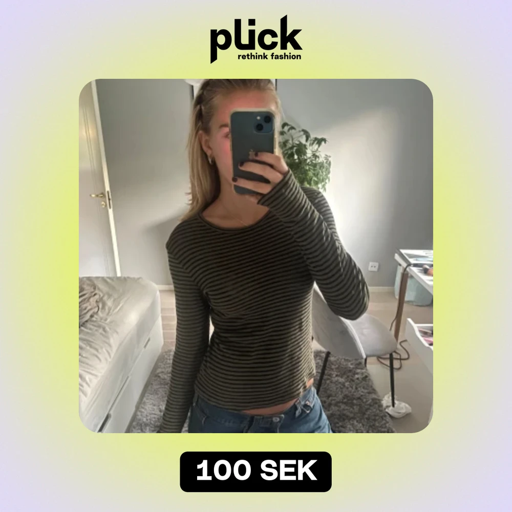 Säljer en superfin randig tröja i grönt och svart. Den är långärmad och har en tight passform som sitter perfekt. Perfekt för höst och vår när det är lite kyligare ute. Passar både till jeans och kjol!