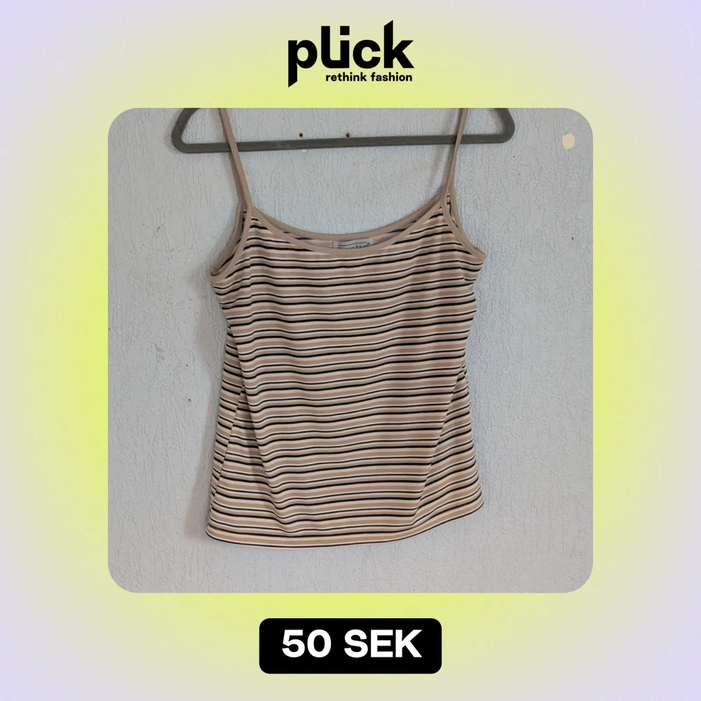 Säljer ett randigt linne från Amalia i storlek L. Linnet är i beige och svart med smala axelband. Tillverkat i 92% polyester och 8% lycra, vilket gör det stretchigt och bekvämt.