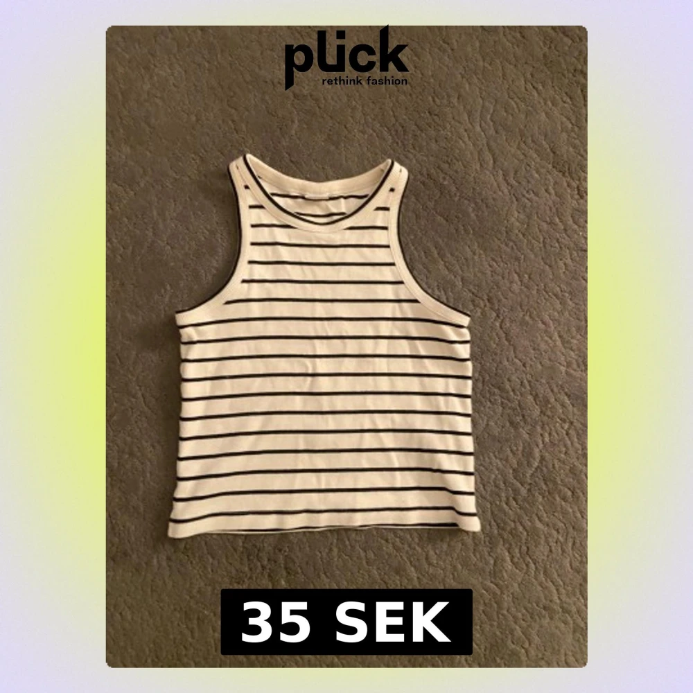 Säljer en vit och svart randig linnetopp från Lindex i storlek 146/152. Toppen har klassisk rak passform och ärmlös design med rund halsringning. Perfekt för varma dagar och enkel att matcha med jeans eller shorts.