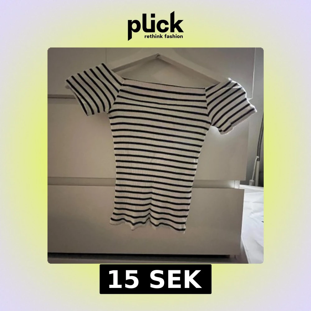 Snygg randig offshoulder topp från Divided i svart och vit. Den är ribbad och har en tight passform, perfekt för en stilren look. Toppen har korta ärmar och en elastisk kant för extra komfort.