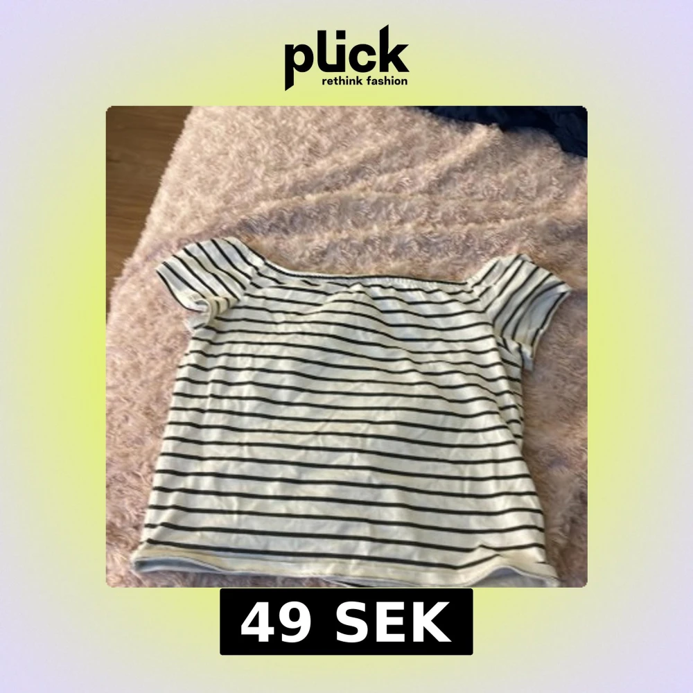 Snygg vit topp med svarta horisontella ränder och offshoulder-modell. Kortärmad och i mjukt bomullstyg, perfekt för en chill och trendig look. Passformen är normal och toppen är enkel att matcha med jeans eller kjol. Den är i storlek 170 men passar mindre storlekar som 146/152 och 158/164 eftersom den är kort i modellen.