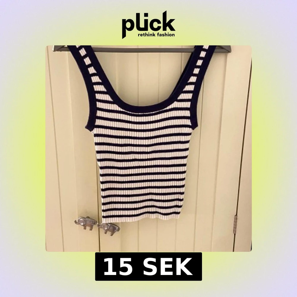 Säljer en ribbad linnetopp från H&M Divided i storlek XXS. Toppen är vit med mörkblå horisontella ränder och har breda axelband samt rundad halsringning. Perfekt för en chill och stilren look.