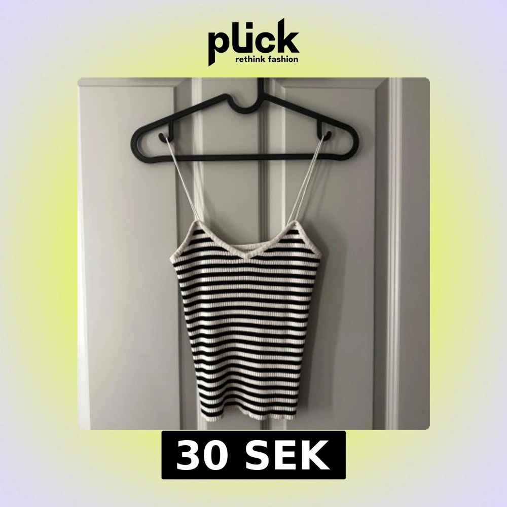 Säljer en stilren svartvit randig ribbad linnetopp med smala axelband. Perfekt för varma dagar eller som ett lager under en jacka.